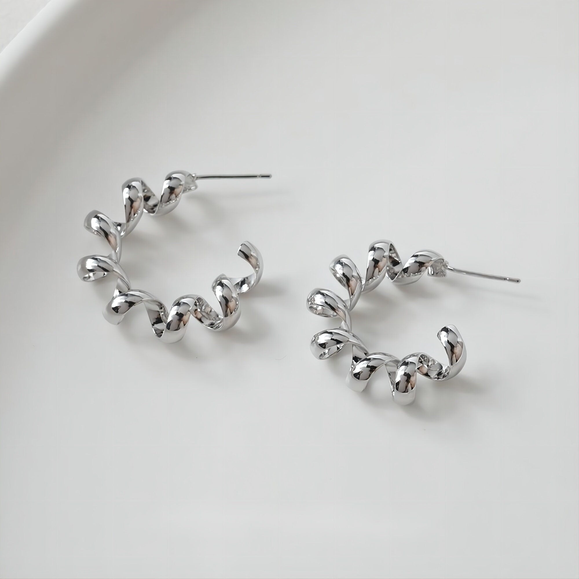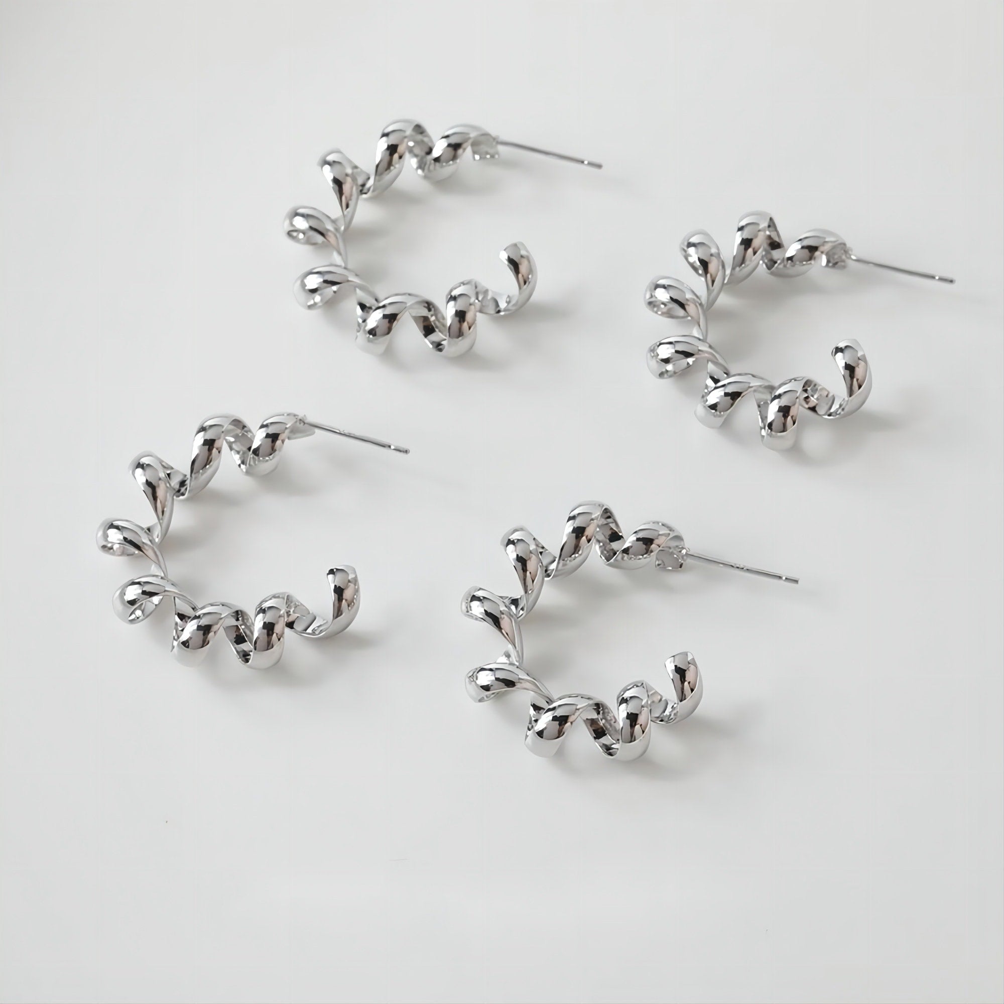 C Shape Twisted Earrings Post, 14K Gold, S925 Silver Ear Pin Nickel Free Earrings, Ear Stud...