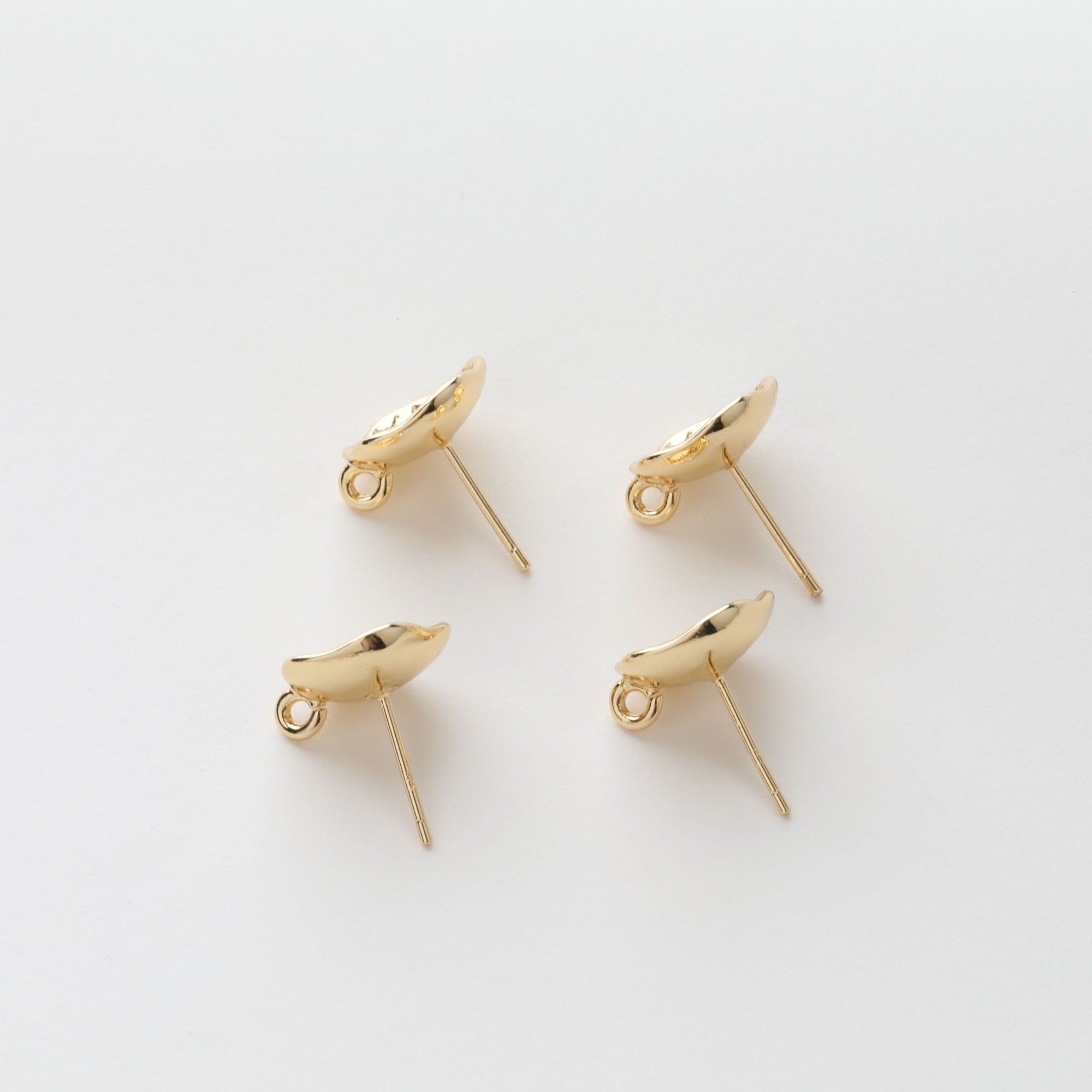 Concave Pleated Post with Loop, 14K Gold Plated, S925 Silver Pin Nickel Free Earrings, Hypoallergenic Earring Findings JJ024