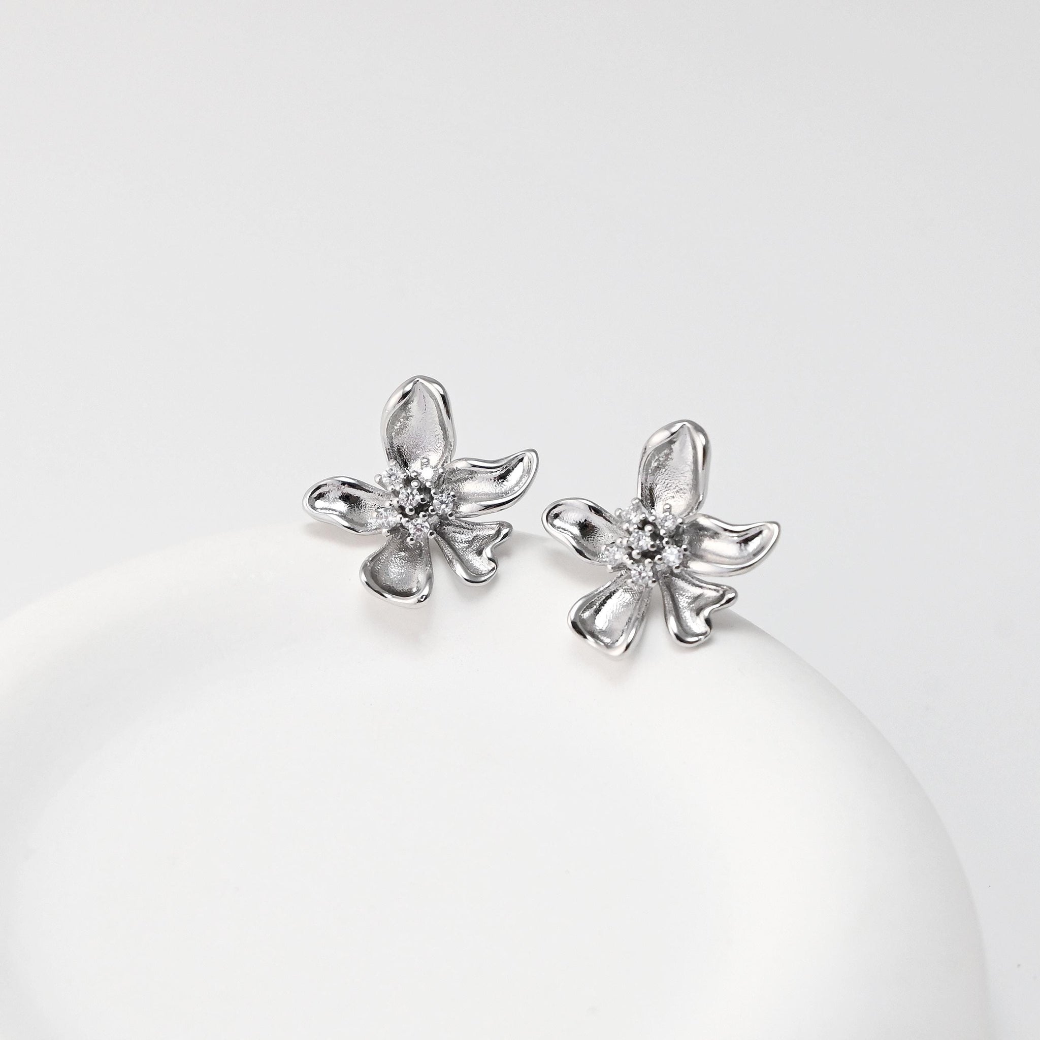 CZ Pave Flower Earrings Post With Loop, 18K Gold Plated, Nickel Free, S925 Silver Pin,Ear Stud Hypoallergenic Earring Findings D0477