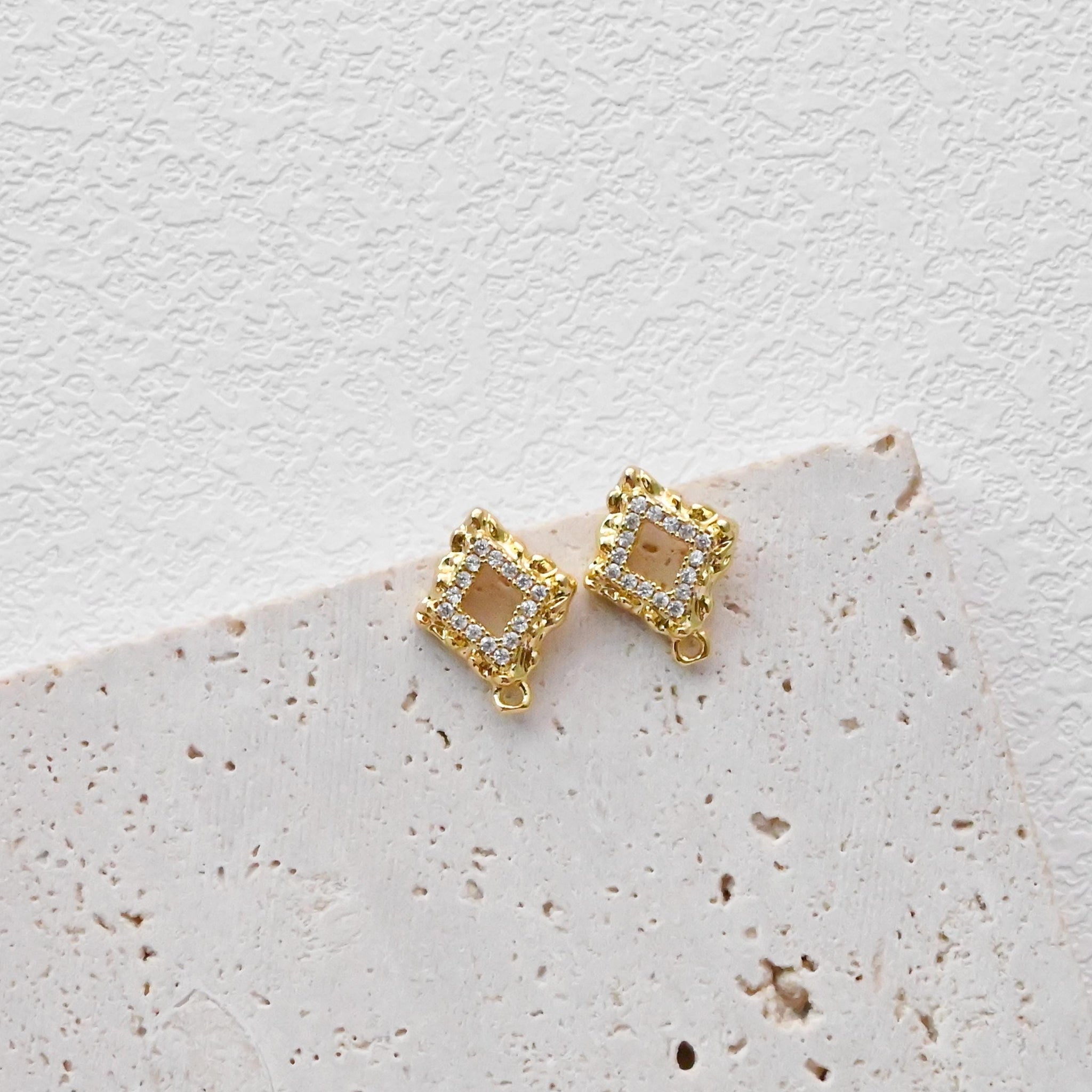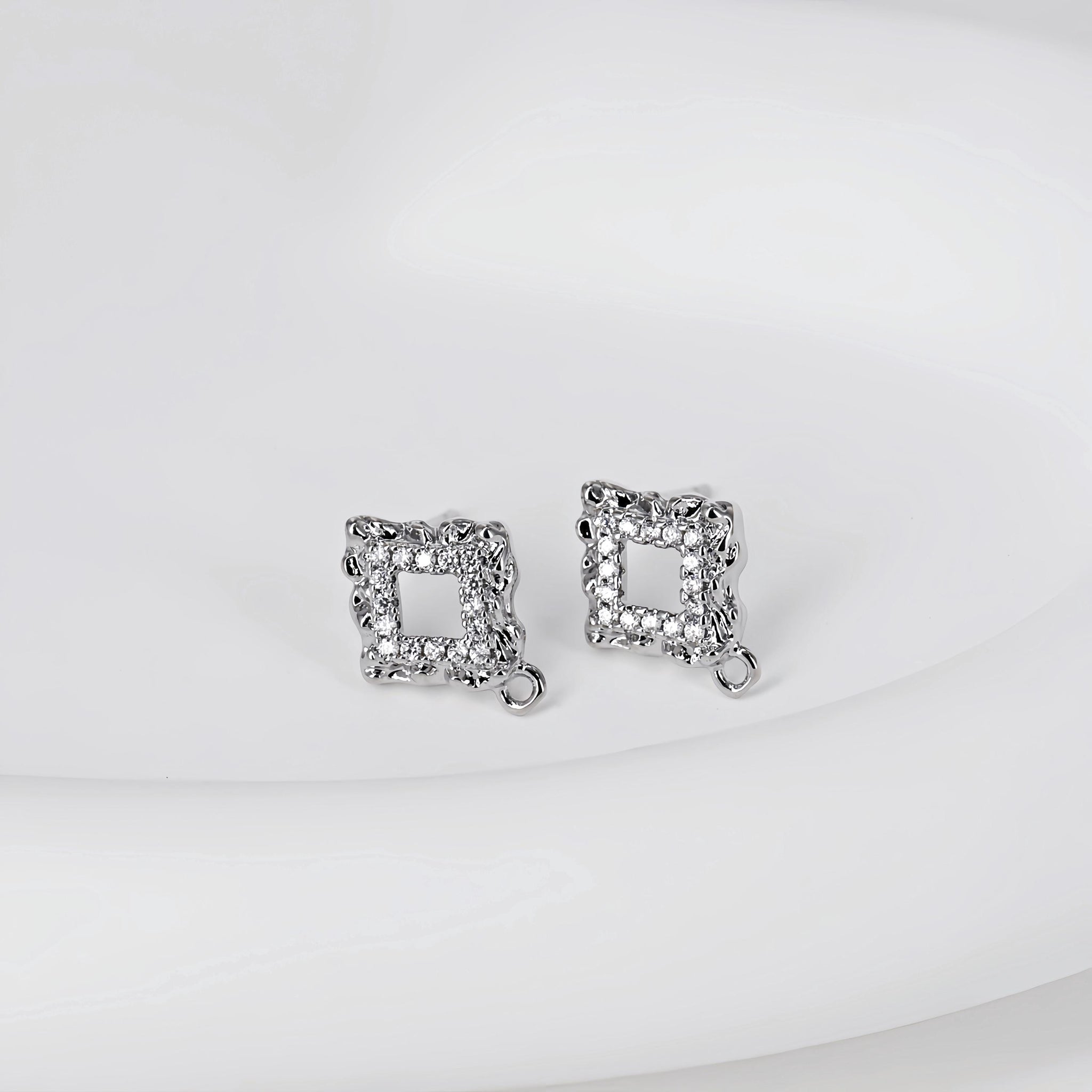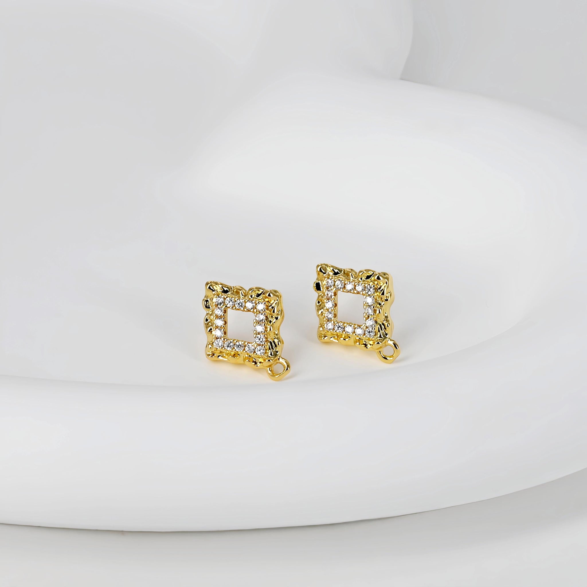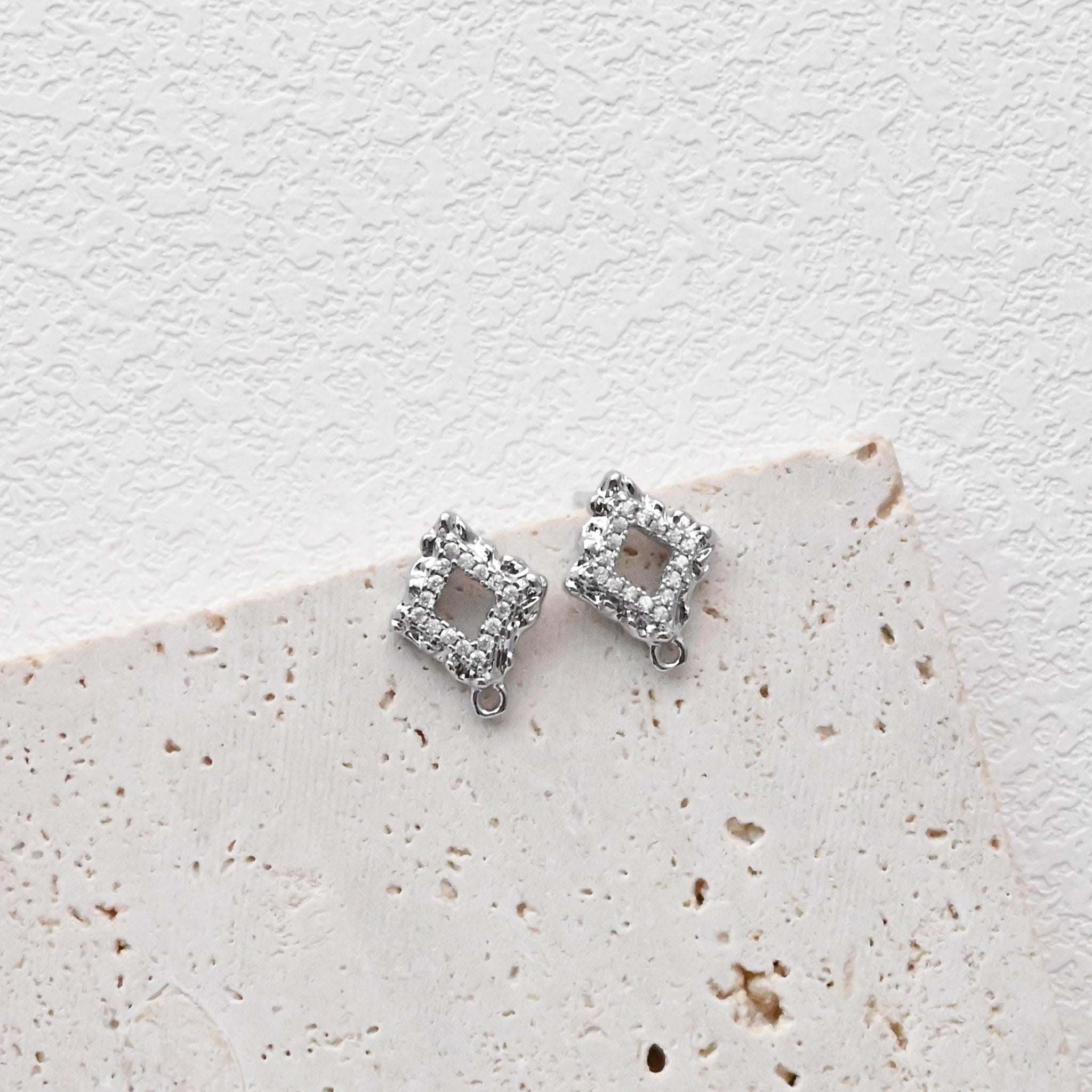 Diamond shaped Post with Loop, Pave CZ, 18K Gold, S925 Silver Pin Nickel Free Earrings, Hypoallergenic Earring Findings D0423