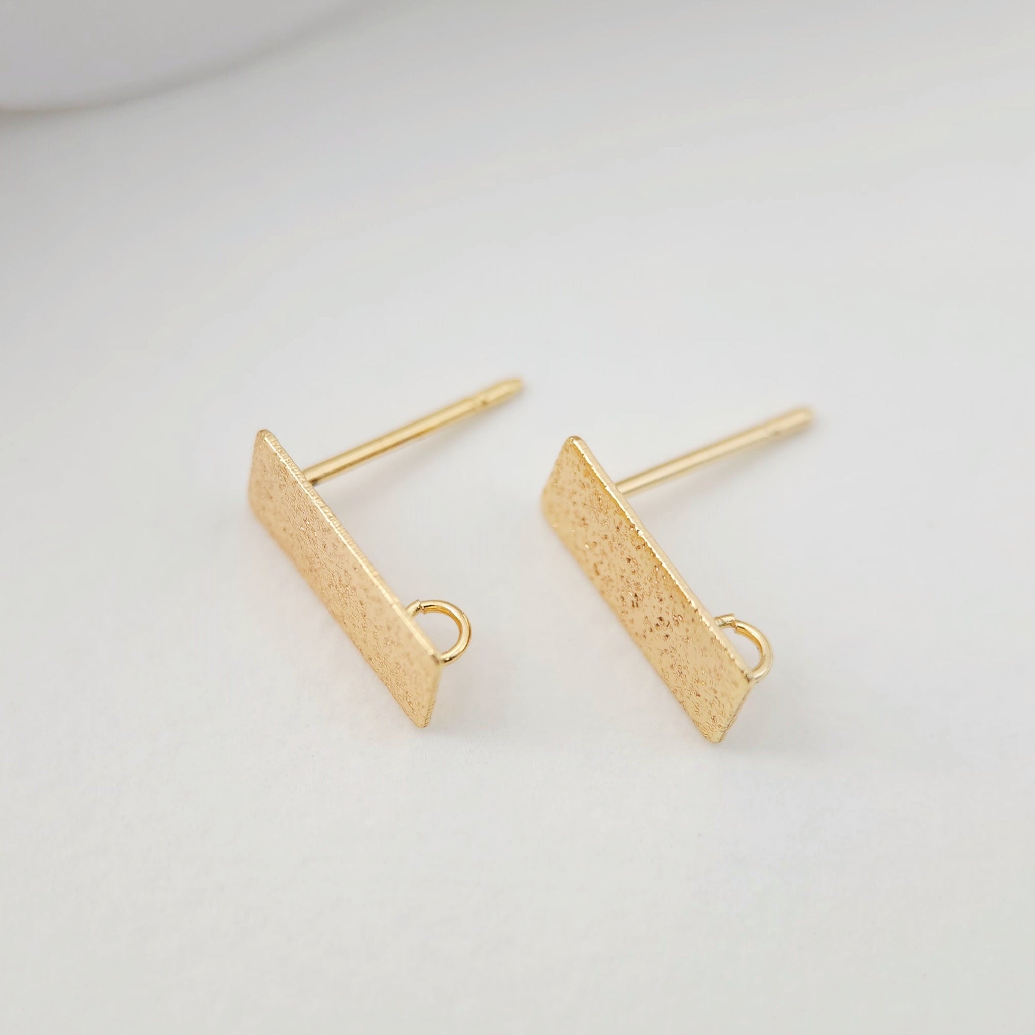 Frosted Rectangular Earrings Post, 18K Gold, Free Earrings, Ear Stud with Loop, Jewelry Earring Findings ZX190