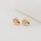 Gold Drop Shape Earring Post With Loop, Brushed Finish, CZ Pave, Nickel Free Earrings, Hypoallergenic Earring Findings ZX283