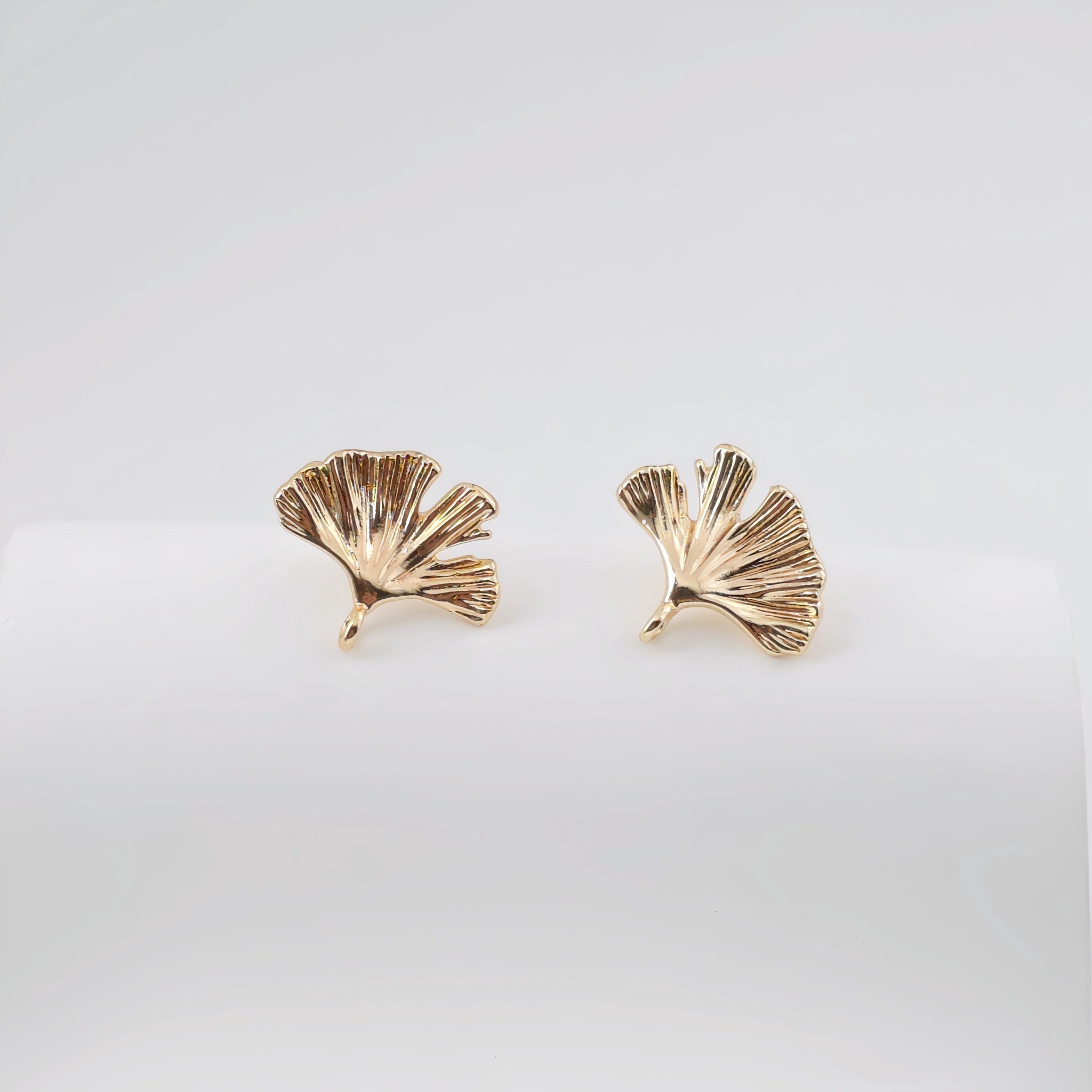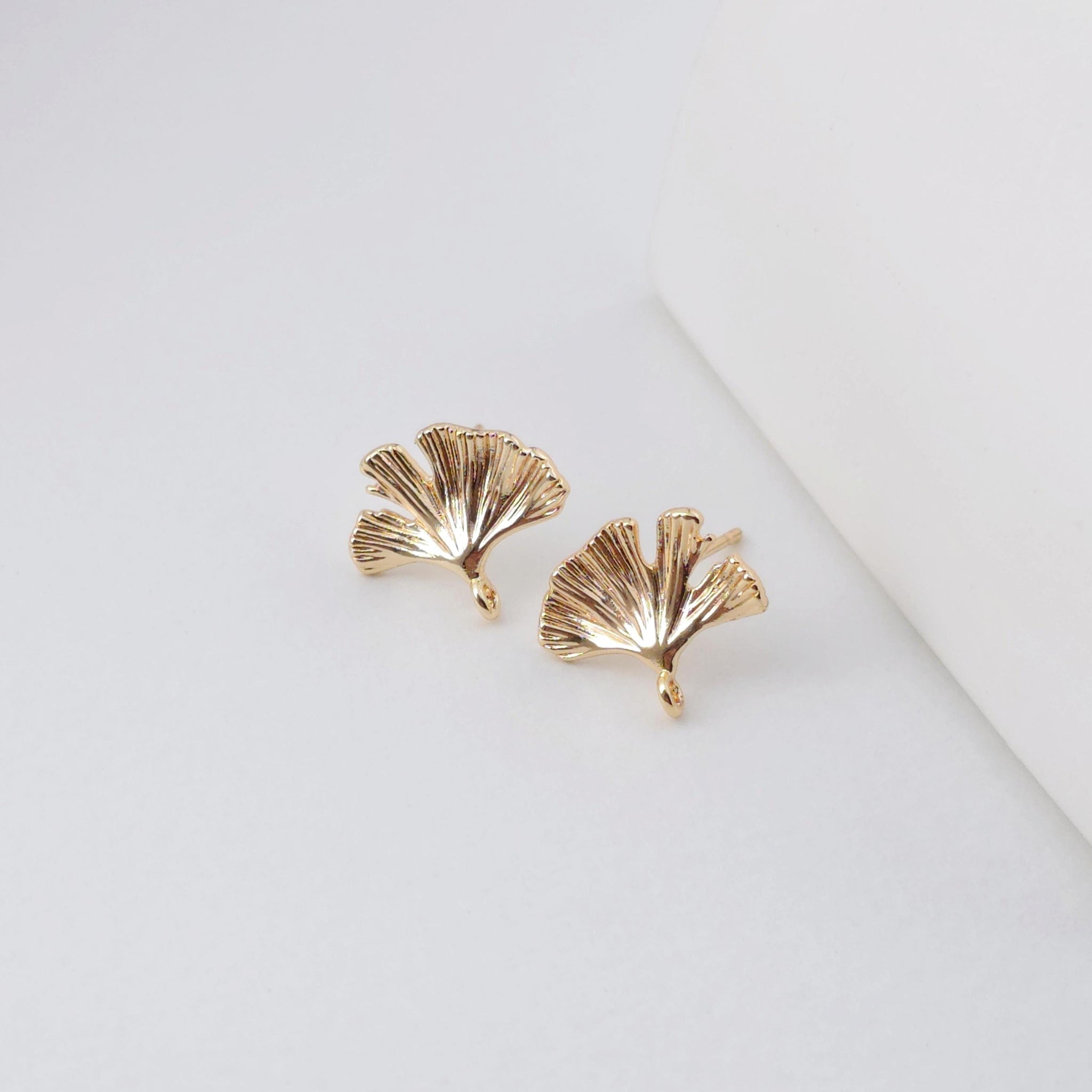 Gold Leaf Earring Post With Closed Loop, Ginkgo Biloba Post, Nickel Free Earrings, Ear Stud Loop, Hypoallergenic Earring Findings ZX313