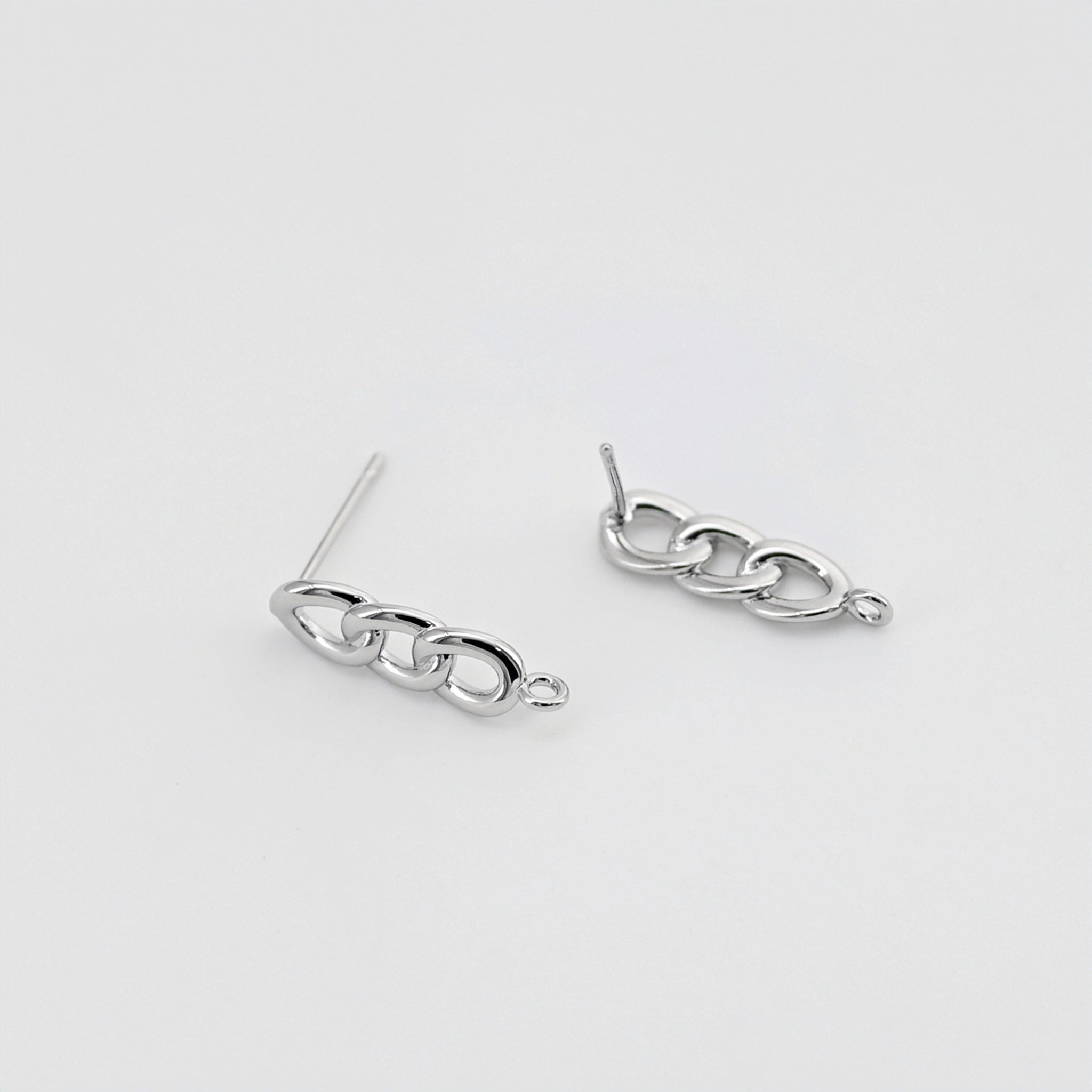 Gold Link Chain Earring Post With Loop, Chain Stud Earring Nickel Free, 18K Gold/Silver, Hypoallergenic Earring Findings D0409