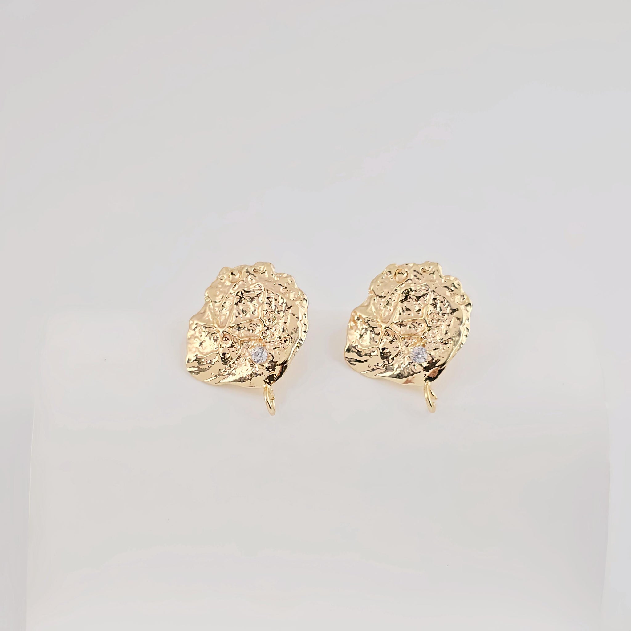 Irregular Pleated Post with Loop, 18K Gold Plated, Pave CZ, S925 Silver Pin Nickel Free Earrings, Hypoallergenic Earring Findings ZX282
