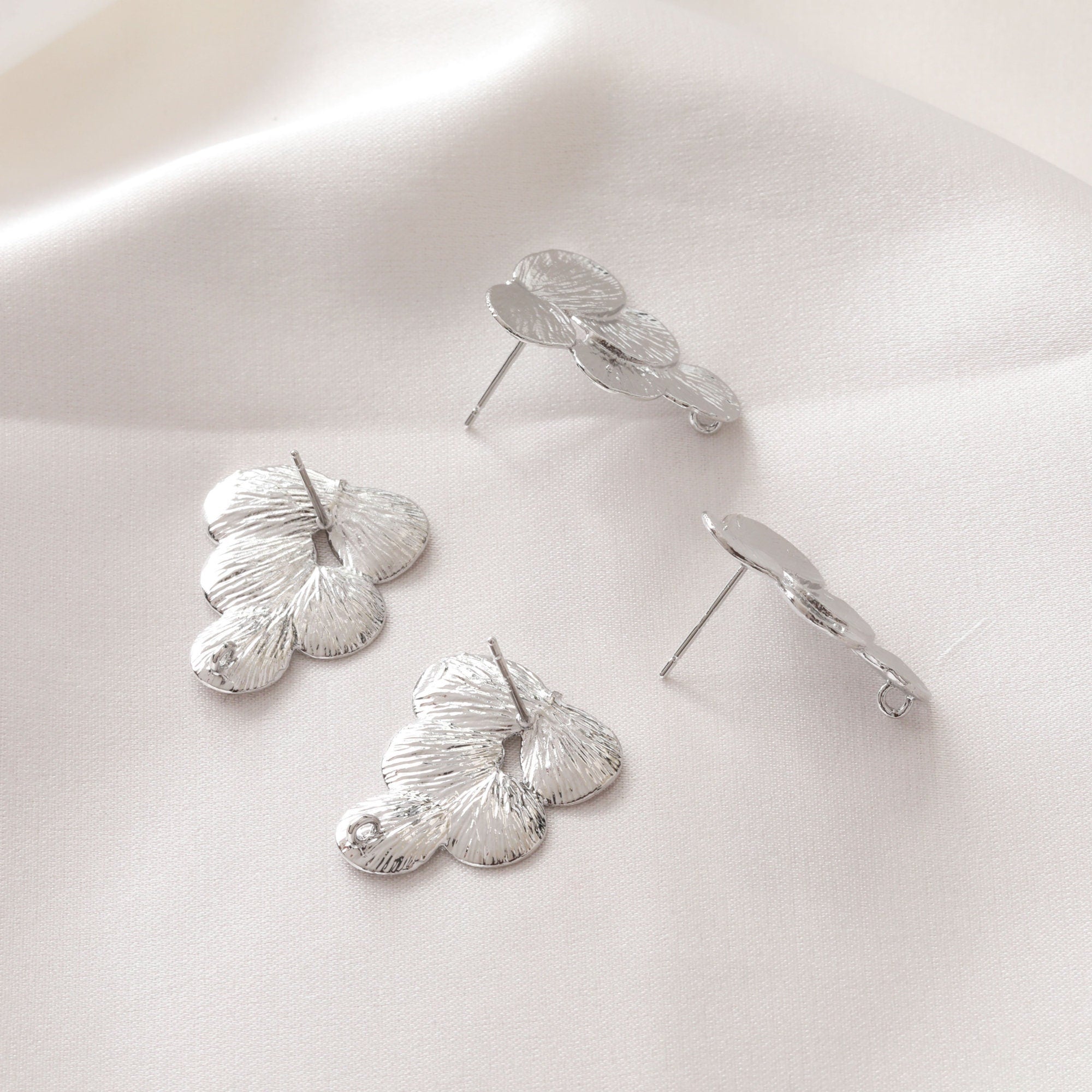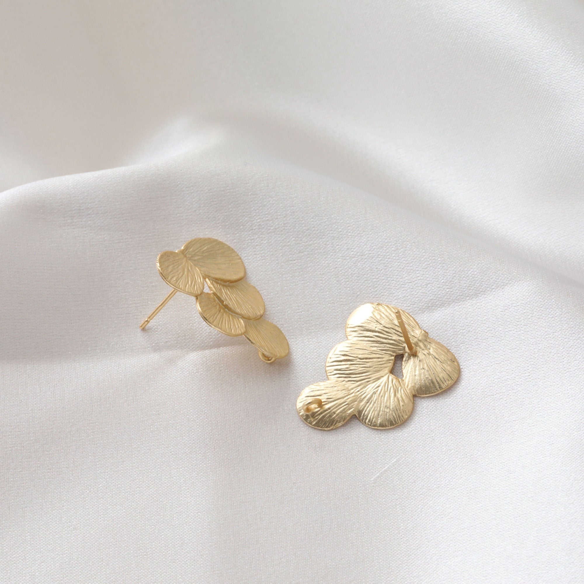 Leaf Post with Loop, Gold/Matte Gold/Silver, S925 Silver Pin Nickel Free Earrings, Hypoallergenic Earring Findings JJ028