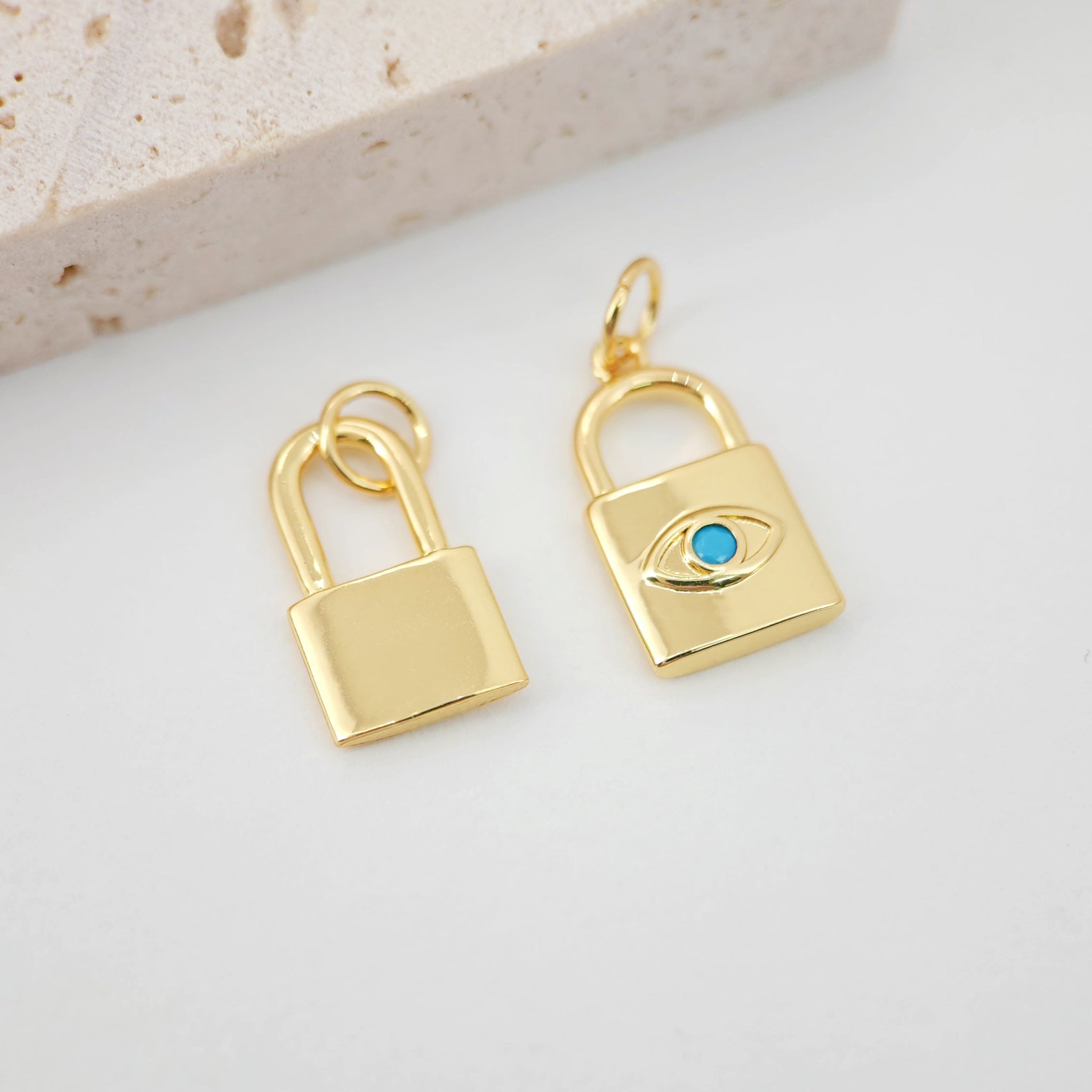Lock Charm, Evil Eye Lock Pendant, 18K Gold Plated, Necklace Bracelet Making Charms, Jewelry Findings S20629Quantity:...