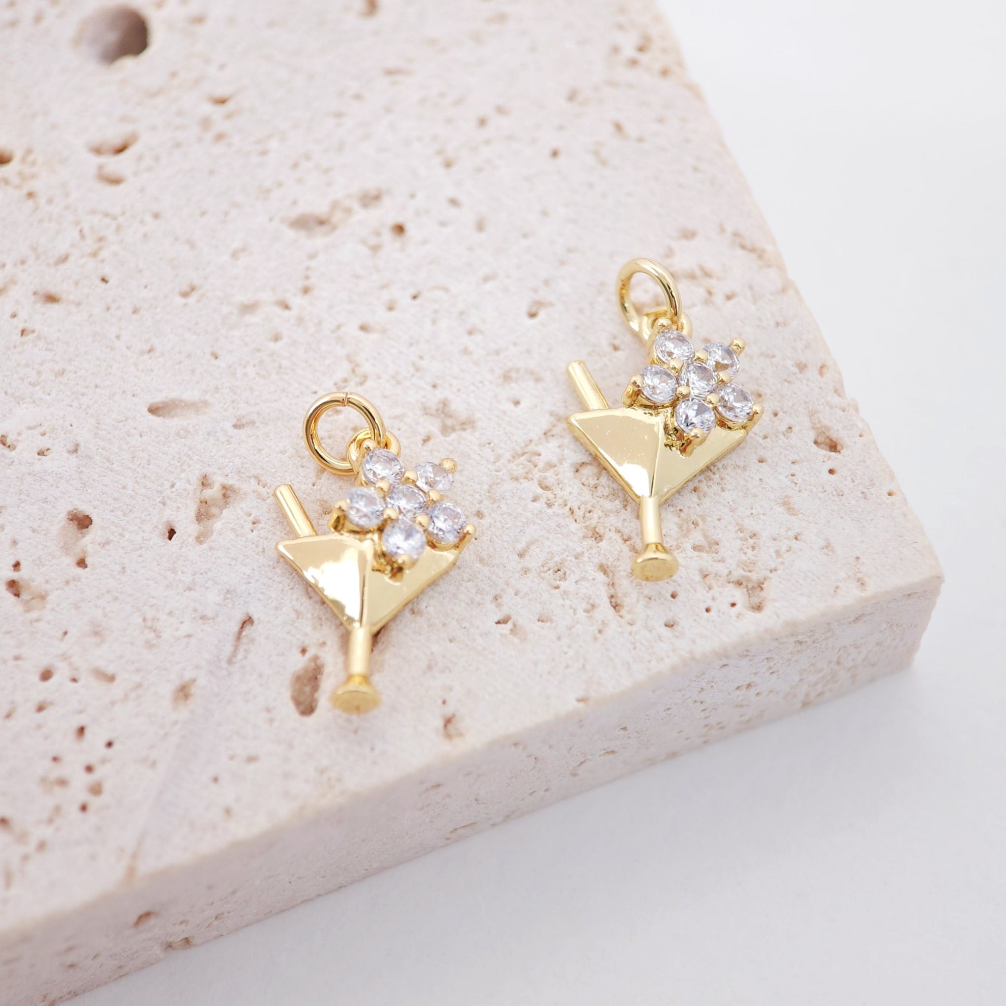 Martini Drink Charms, 18K Gold Plated Cubic Pave Charms, Cocktail Pendant, Necklace charms, 14x9mm, Jewelry Findings...
