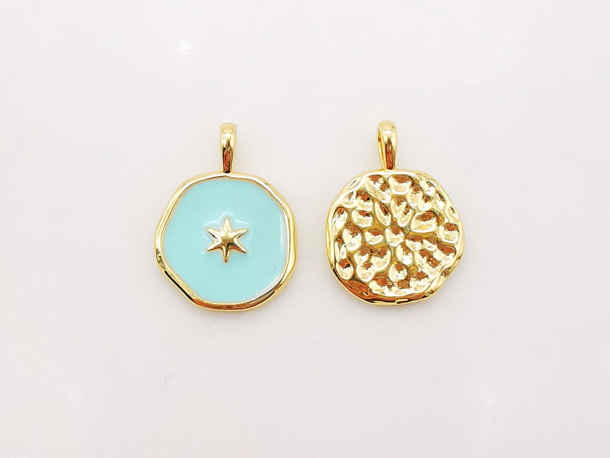 Multicolor Enamel Round Charm, 18K Gold Plated Star/Heart/Moon/Wing/Light, 14mm, Necklace Bracelet Making Pendant, Jewelry Findings S910Quantity:...