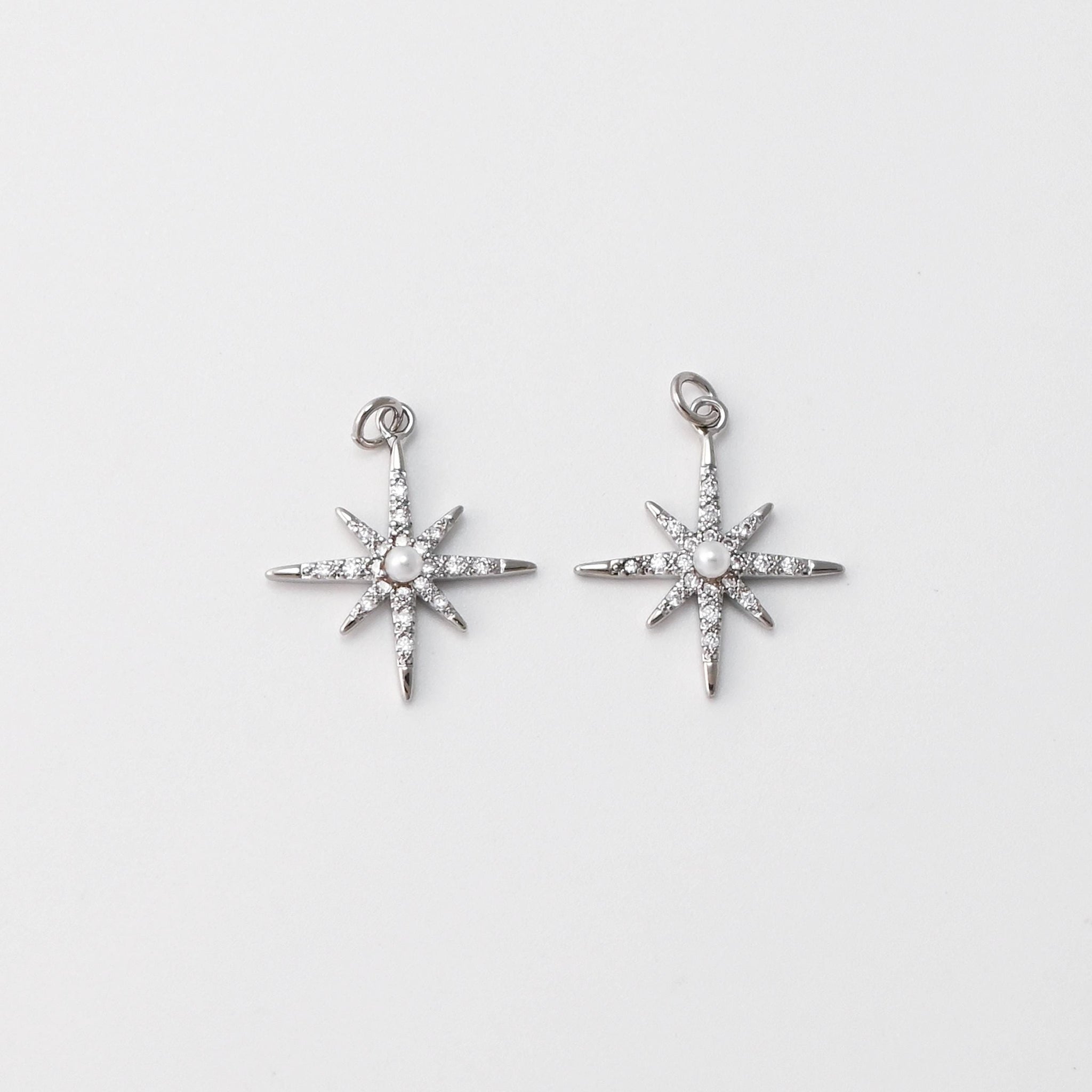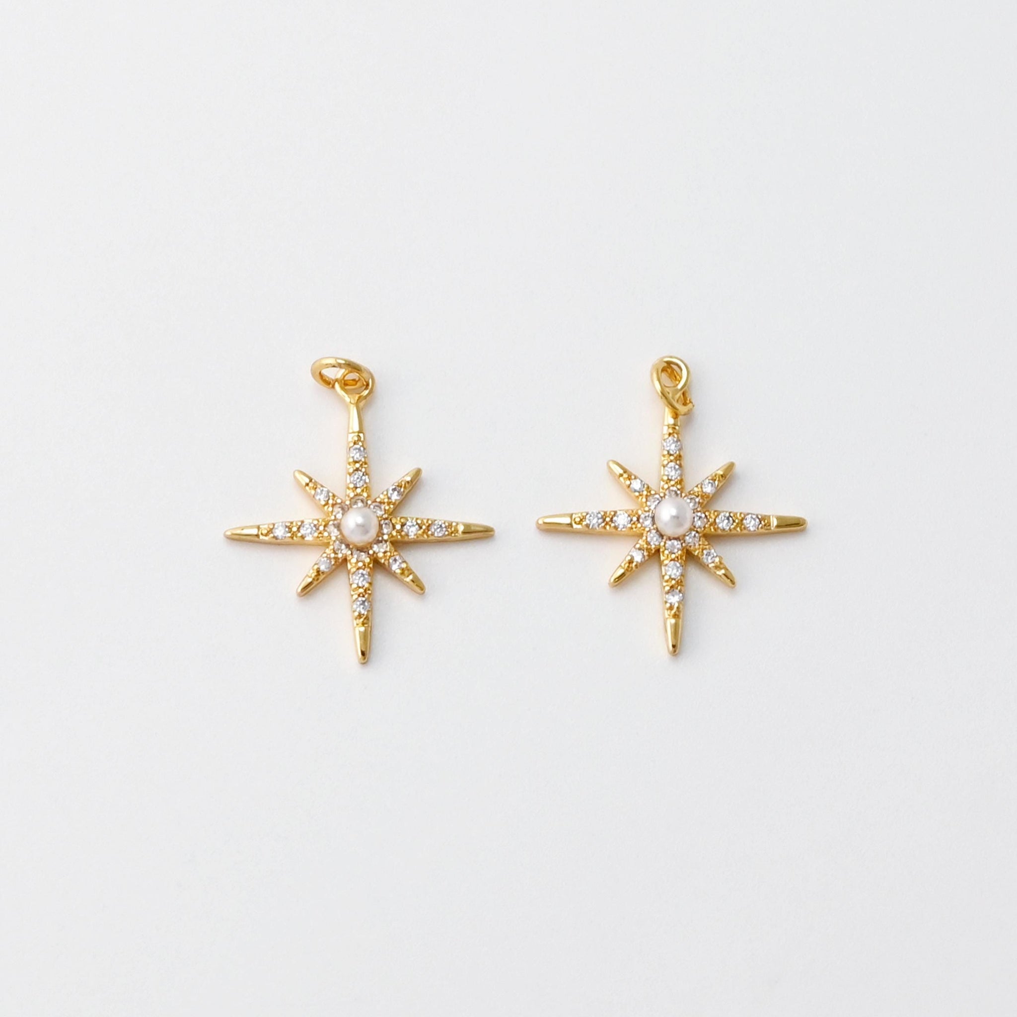 North Star Charms, Crystal Cubic Pave Star Pendant, 18K Gold Plated, Necklace Making Star Charms, Jewelry Findings S20712