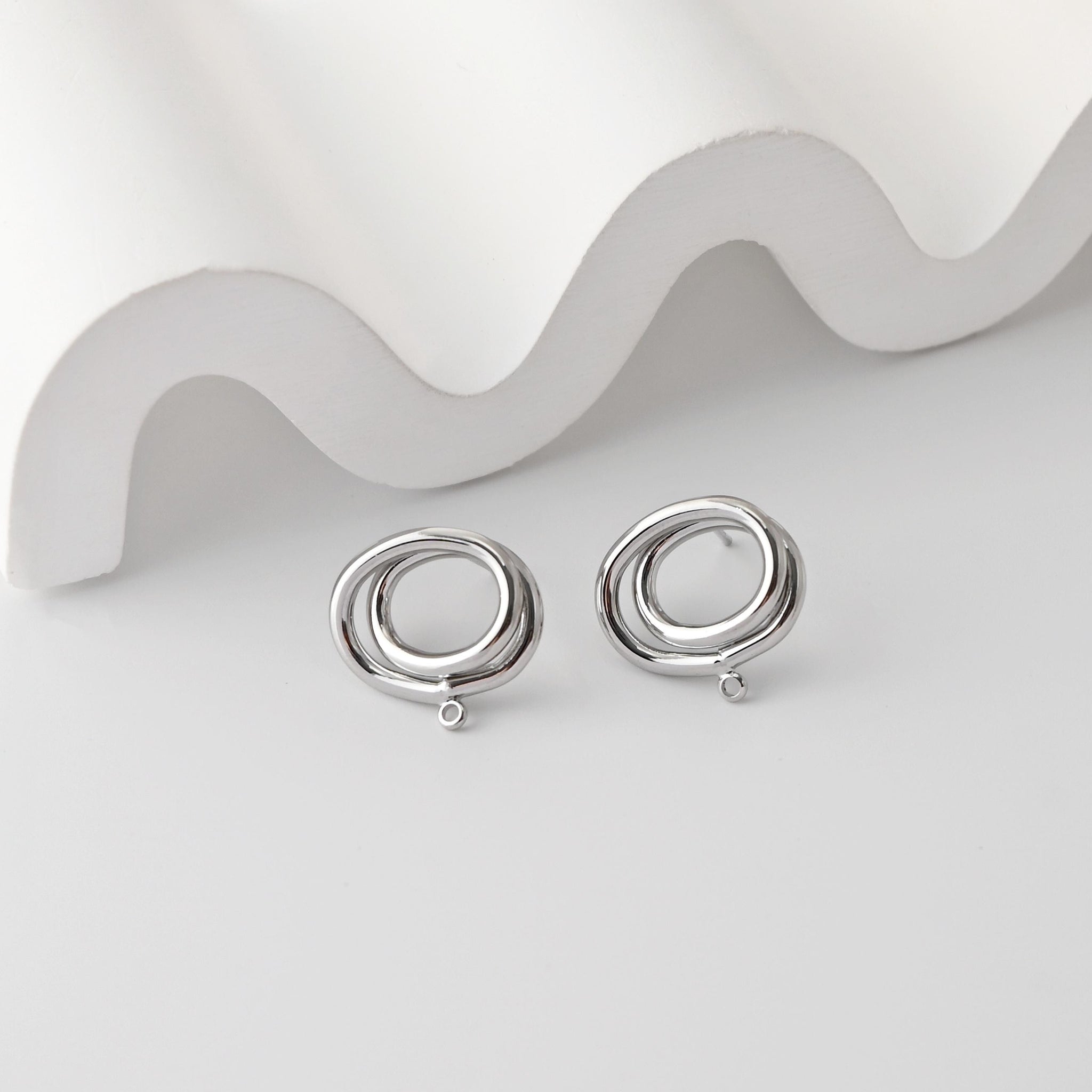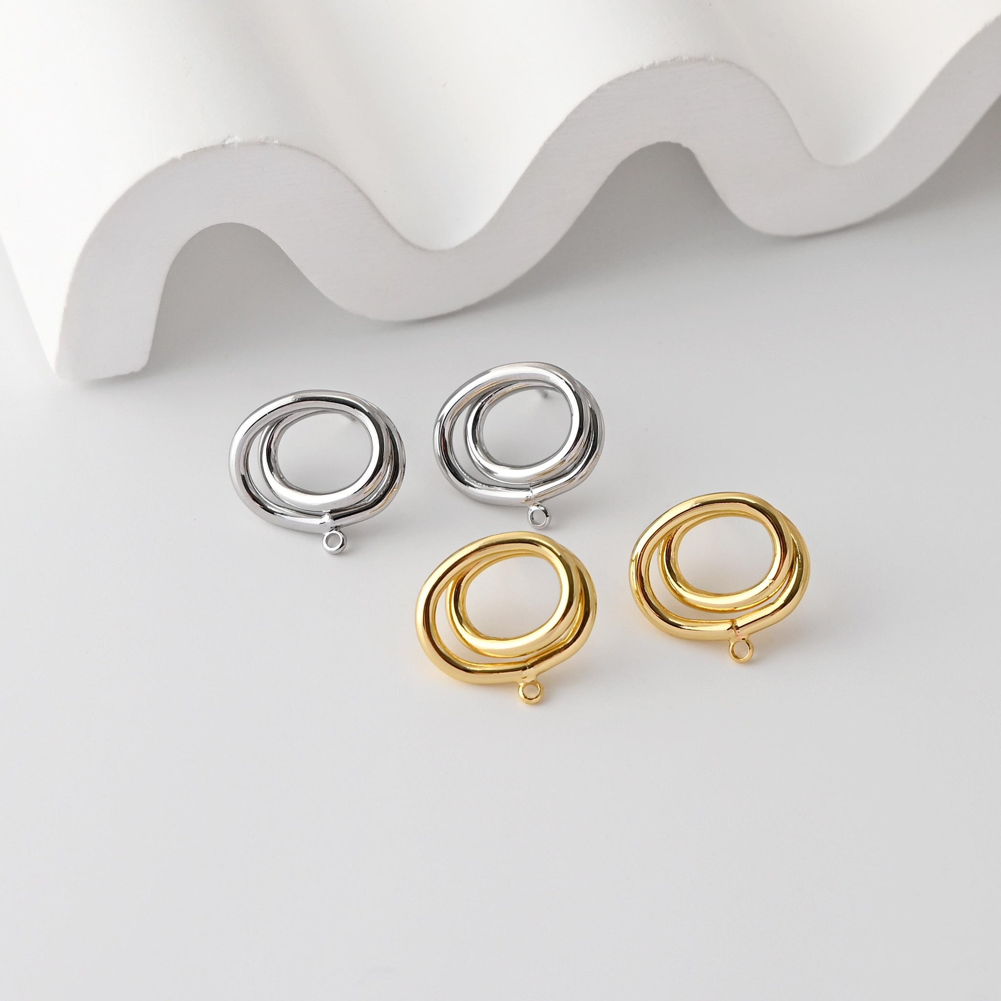 Oval Earrings Post With Loop, 18K Gold Plated, Nickel Free, S925 Silver Pin, Hollow Ear Stud Hypoallergenic Earring Findings D0362