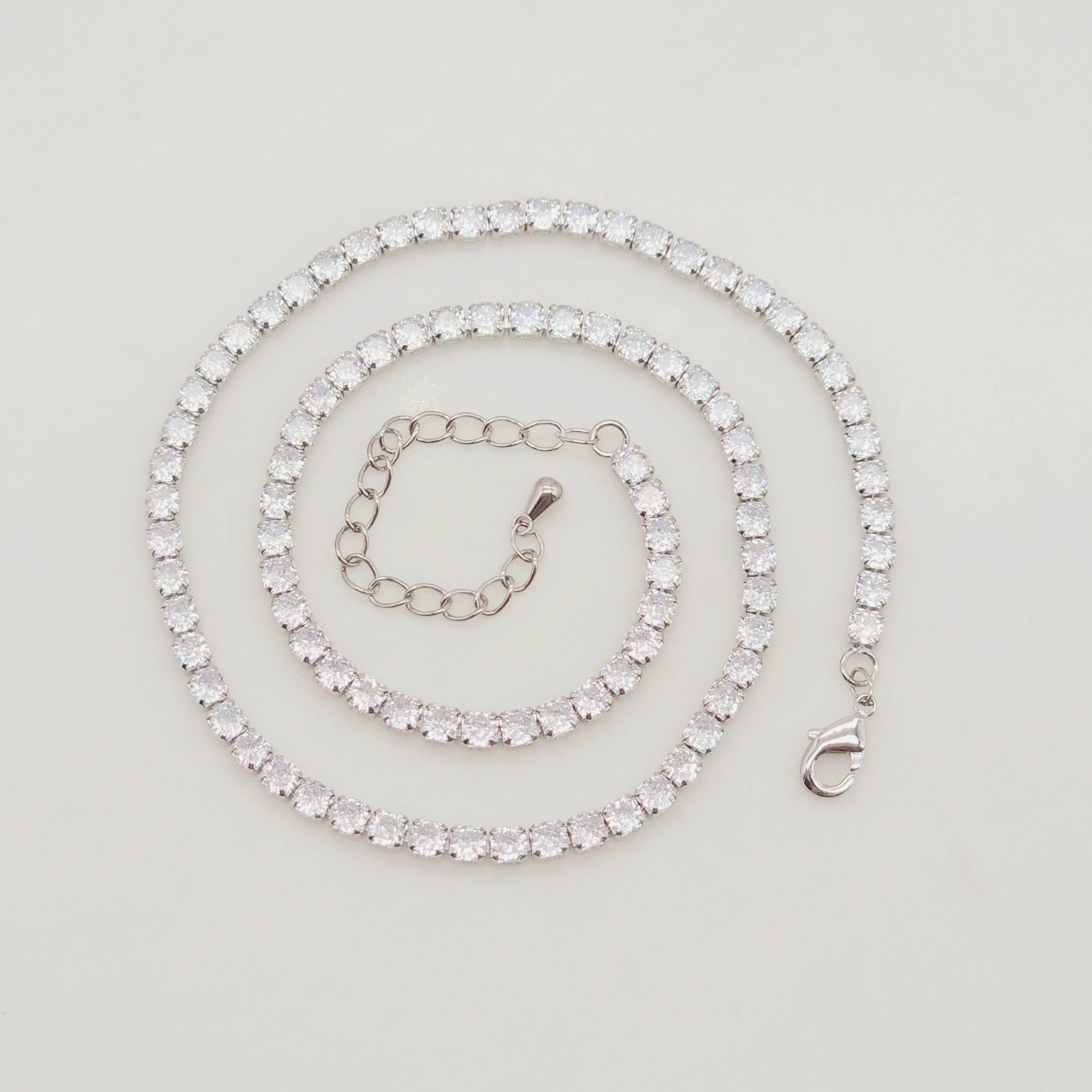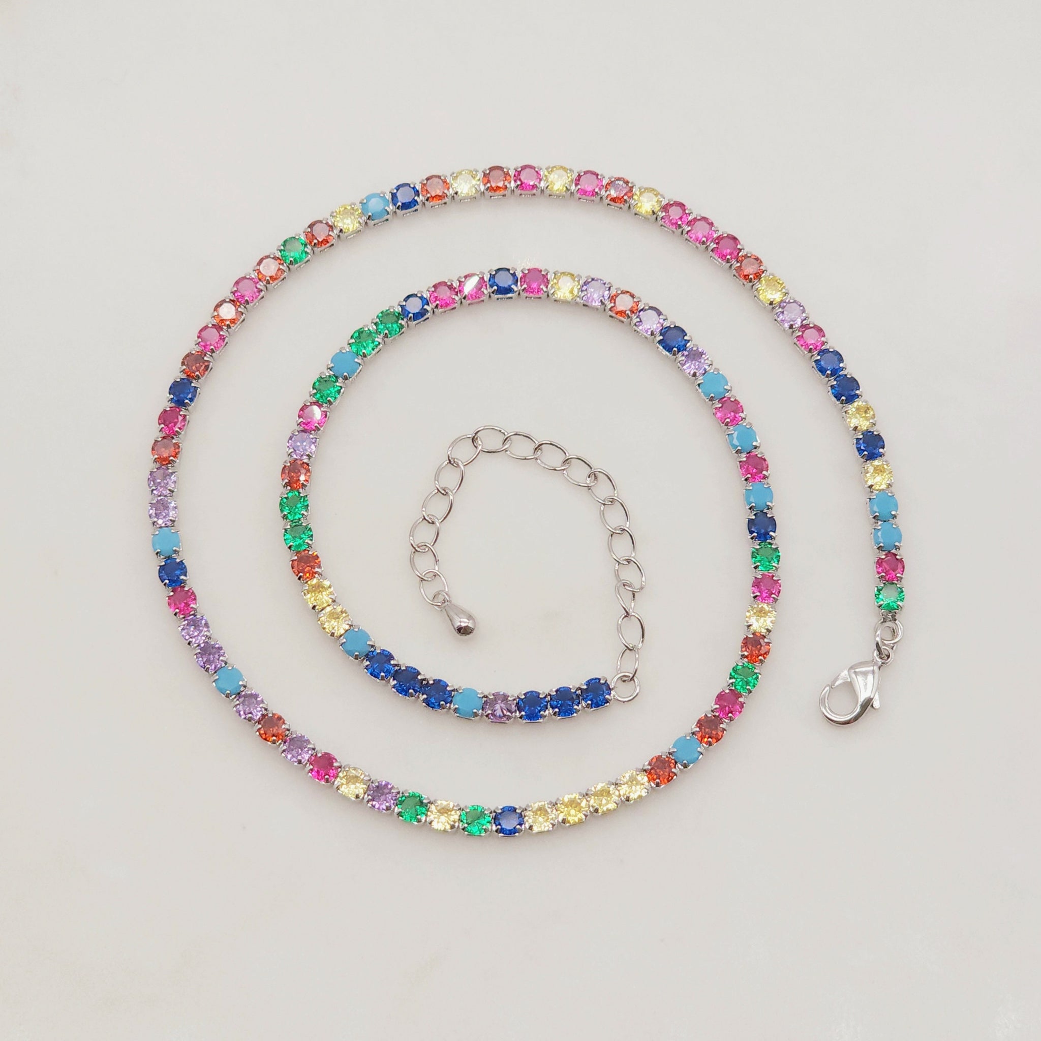 Rainbow Tennis Necklace, Tennis Chocker, 18K gold/Silver, 3mm, Adjustable, Finish Crystals Chain, READY TO WEAR S20319Material:...