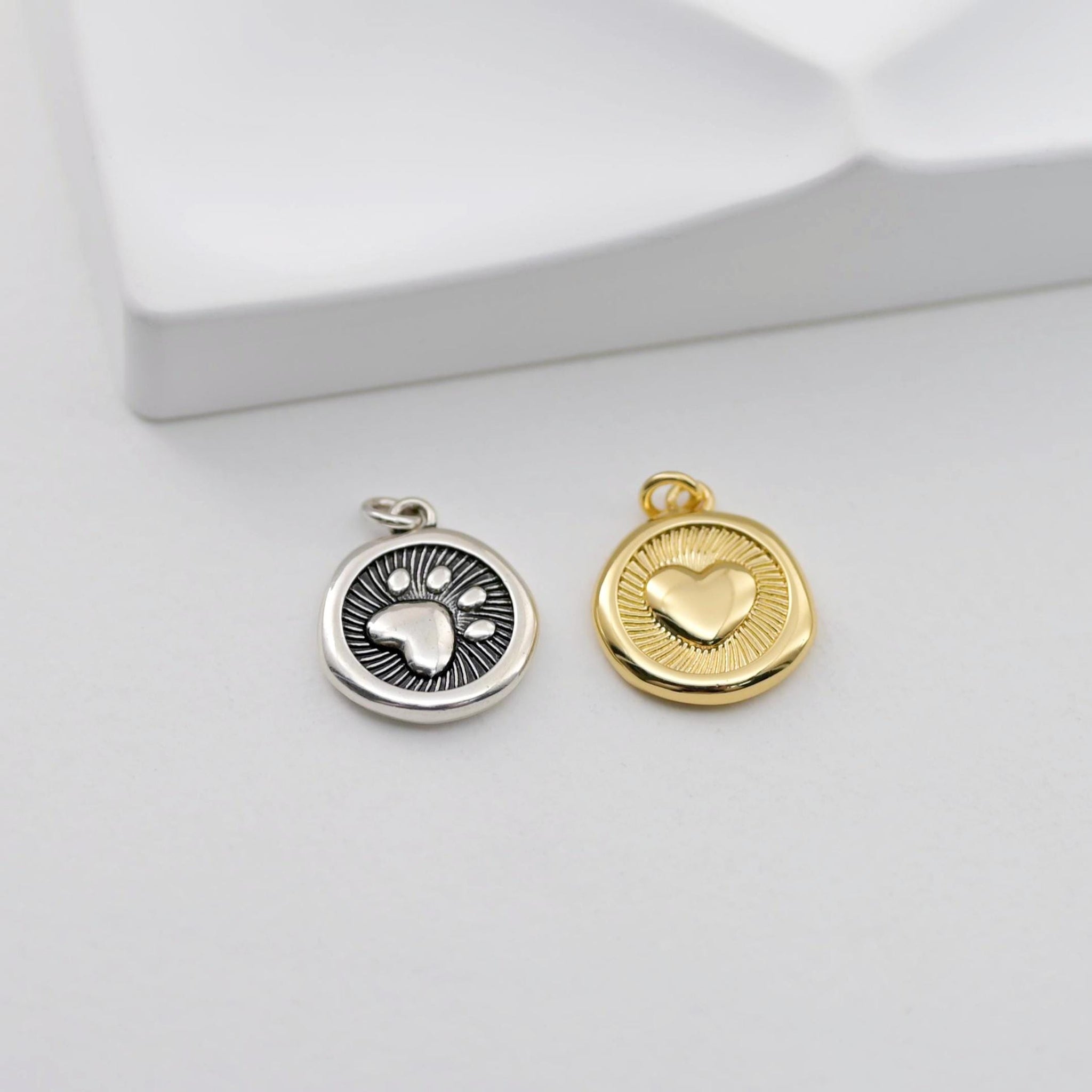 Round Heart Charms, 18K Gold Plated, Round Shape, Love Charms, Bracelet Necklace Making Pendants, Jewelry Findings S20824