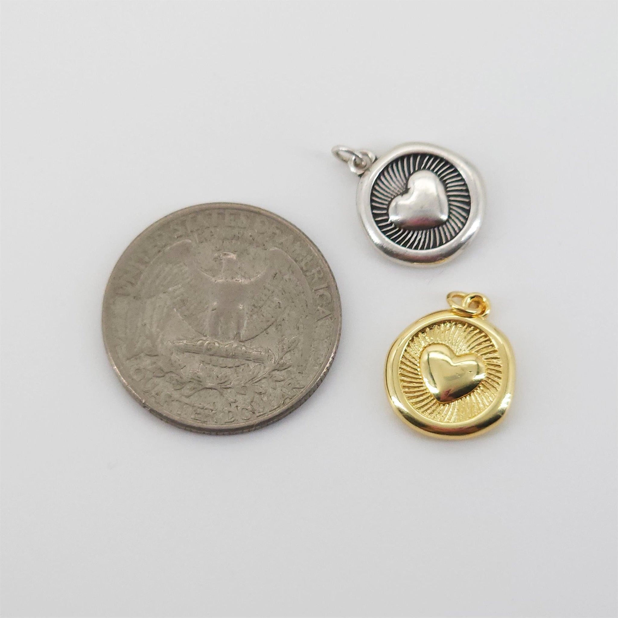 Round Heart Charms, 18K Gold Plated, Round Shape, Love Charms, Bracelet Necklace Making Pendants, Jewelry Findings...