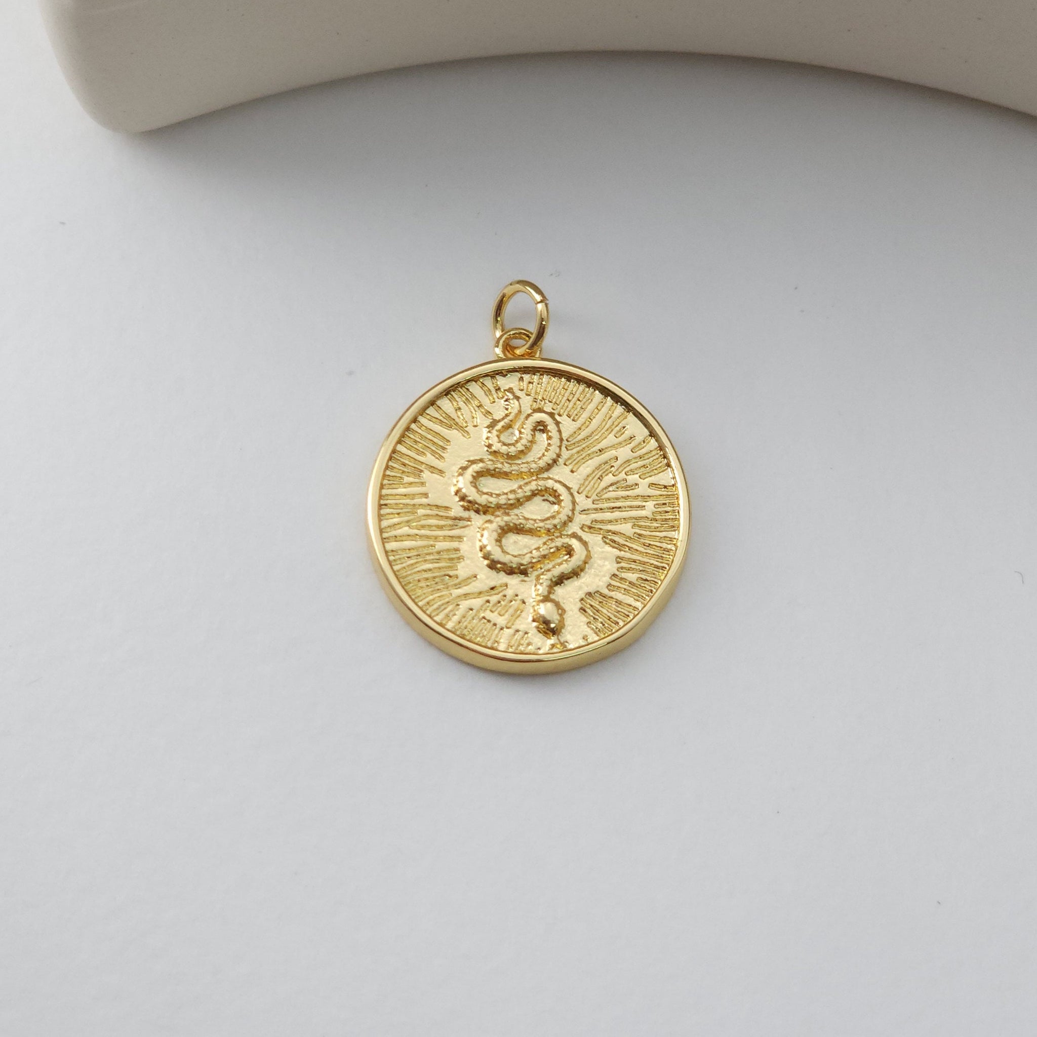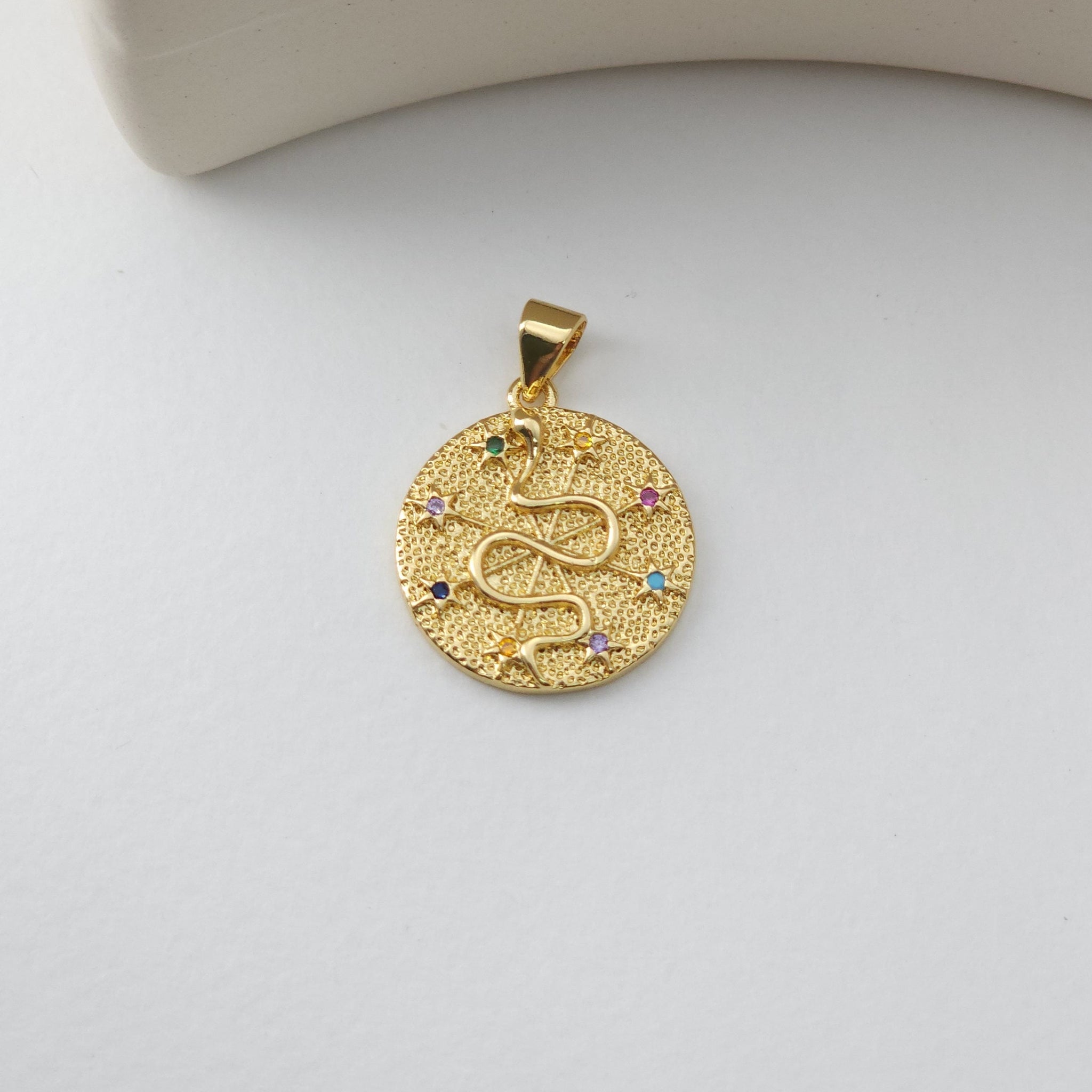 Snake Charm, Dainty CZ Pave, Round Pendant, 18K Gold Plated, Snake Pendant, Bracelet Necklace Making Charm,...