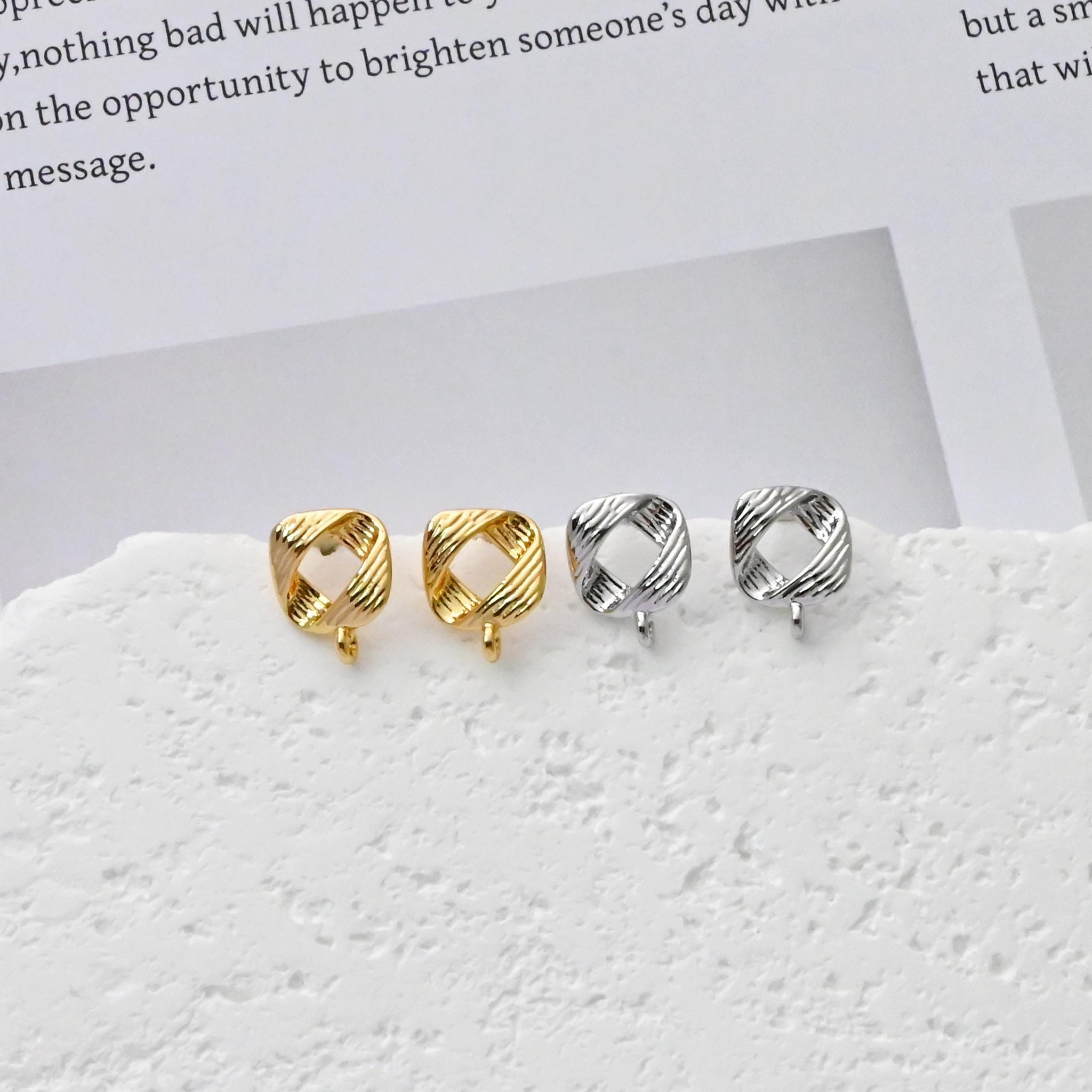 Square Earrings Post With Loop, 18K Gold Plated, Nickel Free, S925 Silver Pin, Ear Stud Hypoallergenic Earring Findings D0469