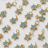 Star Charm, Turquoise Pave Pendant, Real Gold Plated Brass Earring Charms, Jewelry Findings GZ396