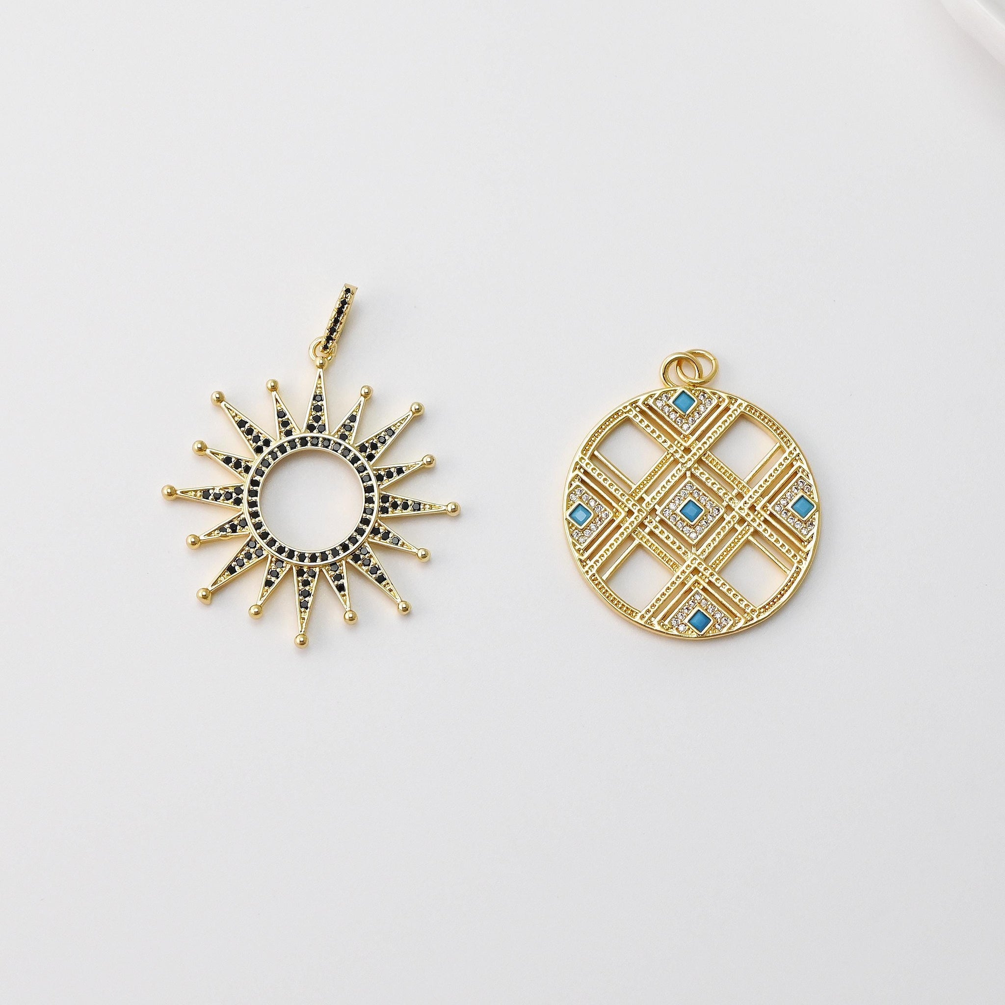Sun Pendant, CZ Pave, Boho Round Pendant, Openwork Charm, 18K Gold Plated CZ Pave, Necklace Making Charm, Jewelry Findings