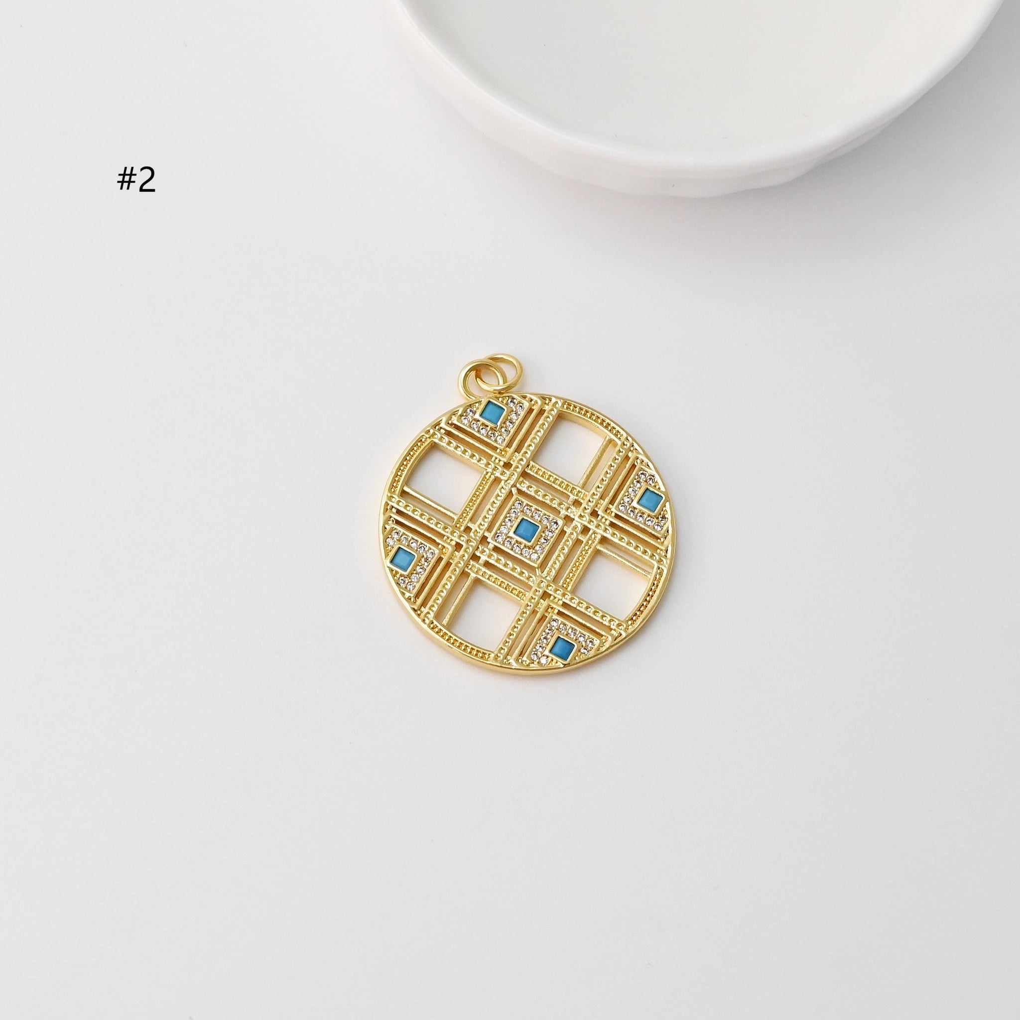 Quantity: 1pc/10pcsSize: #1: 37*34.6mm#2: 34x30mmColor: 18k GoldMaterial: Brass, Cubic Zircon, 18k gold platedMore Evil Eye Style...