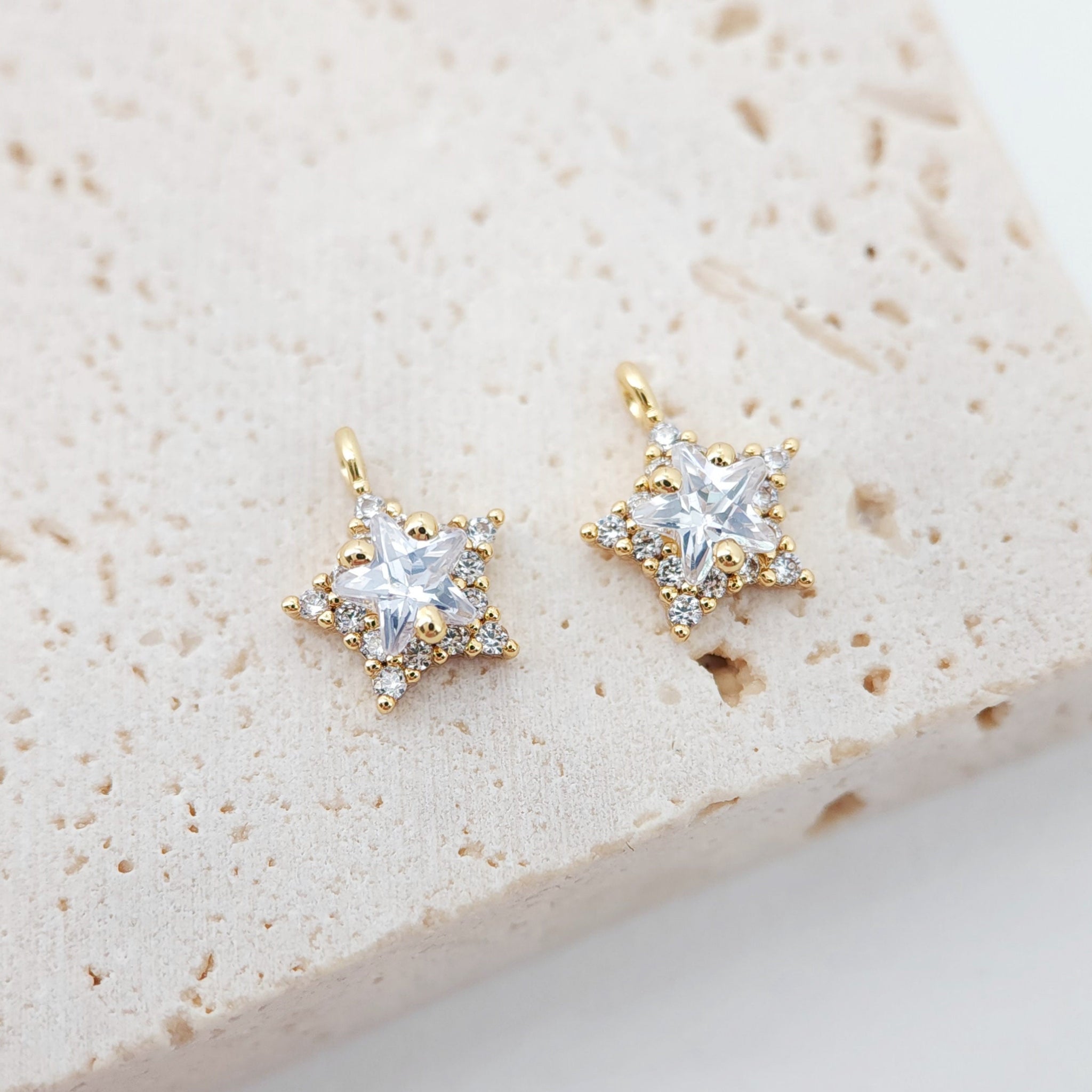 Tiny Star Charms, 8mm Crystal Cubic Star Pendant, 18K Gold Plated, Necklace charms, Jewelry Findings S692