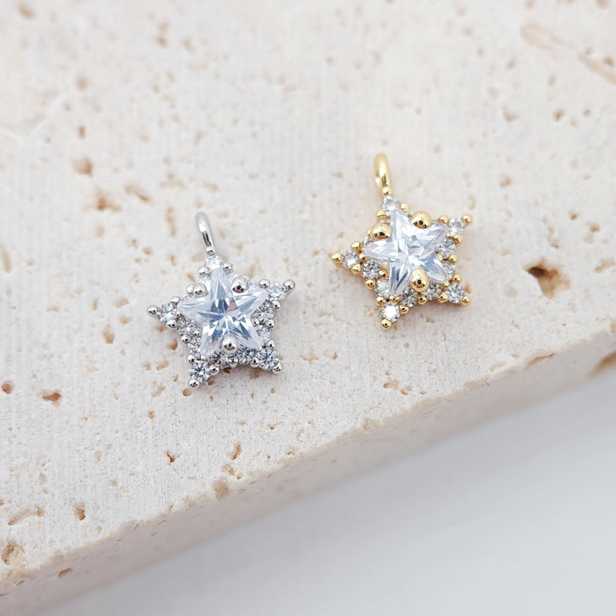 8mm Tiny Star Charms, Crystal Cubic Star Pendant, 18K Gold Plated, Necklace charms, Jewelry Findings S692Quantity:1PCS/...
