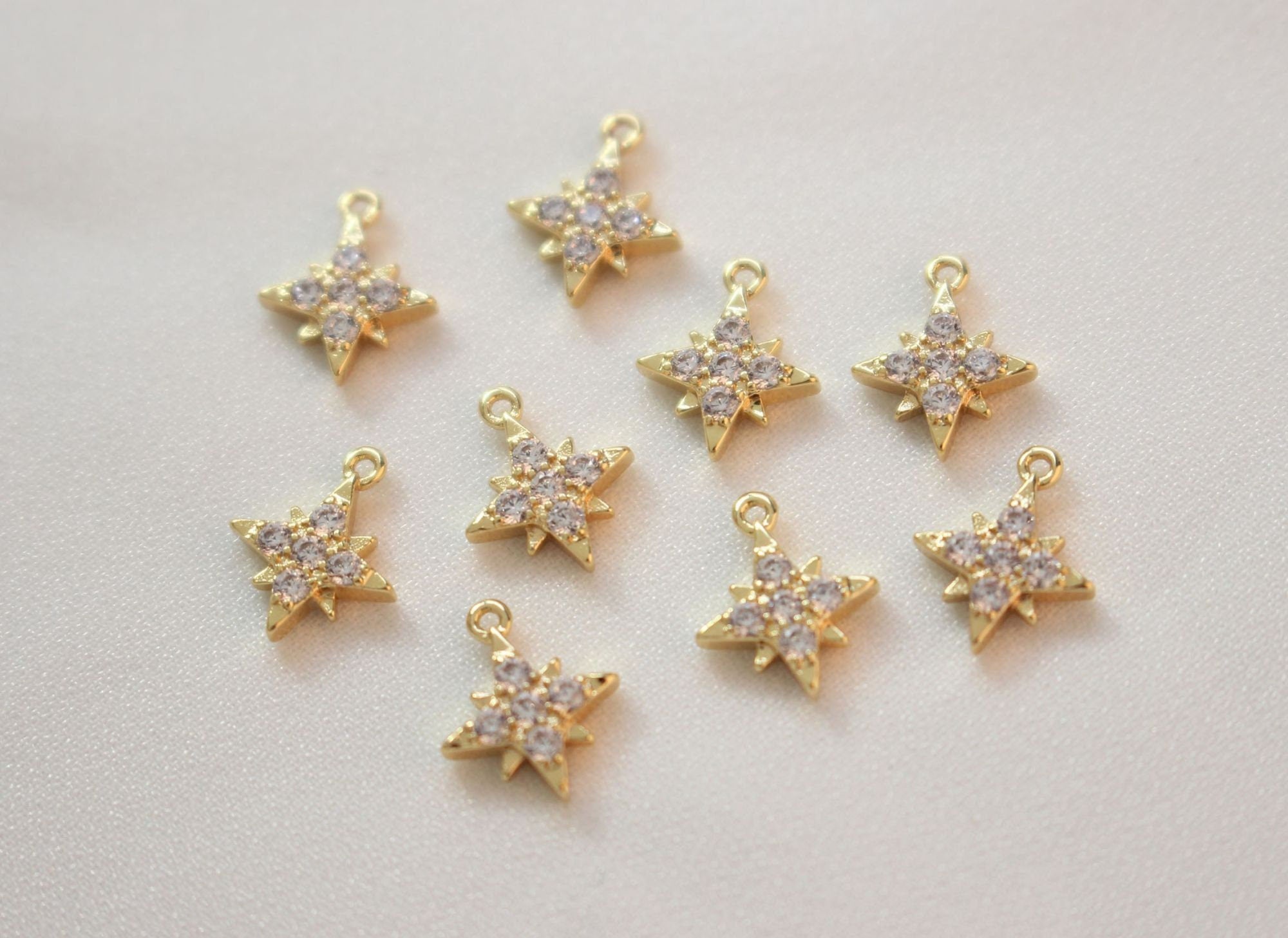 Tiny Star Charms,  Crystal Cubic Pave Star Pendant, 18K Gold Plated, Necklace Making Star Charms, Jewelry Findings GZ421