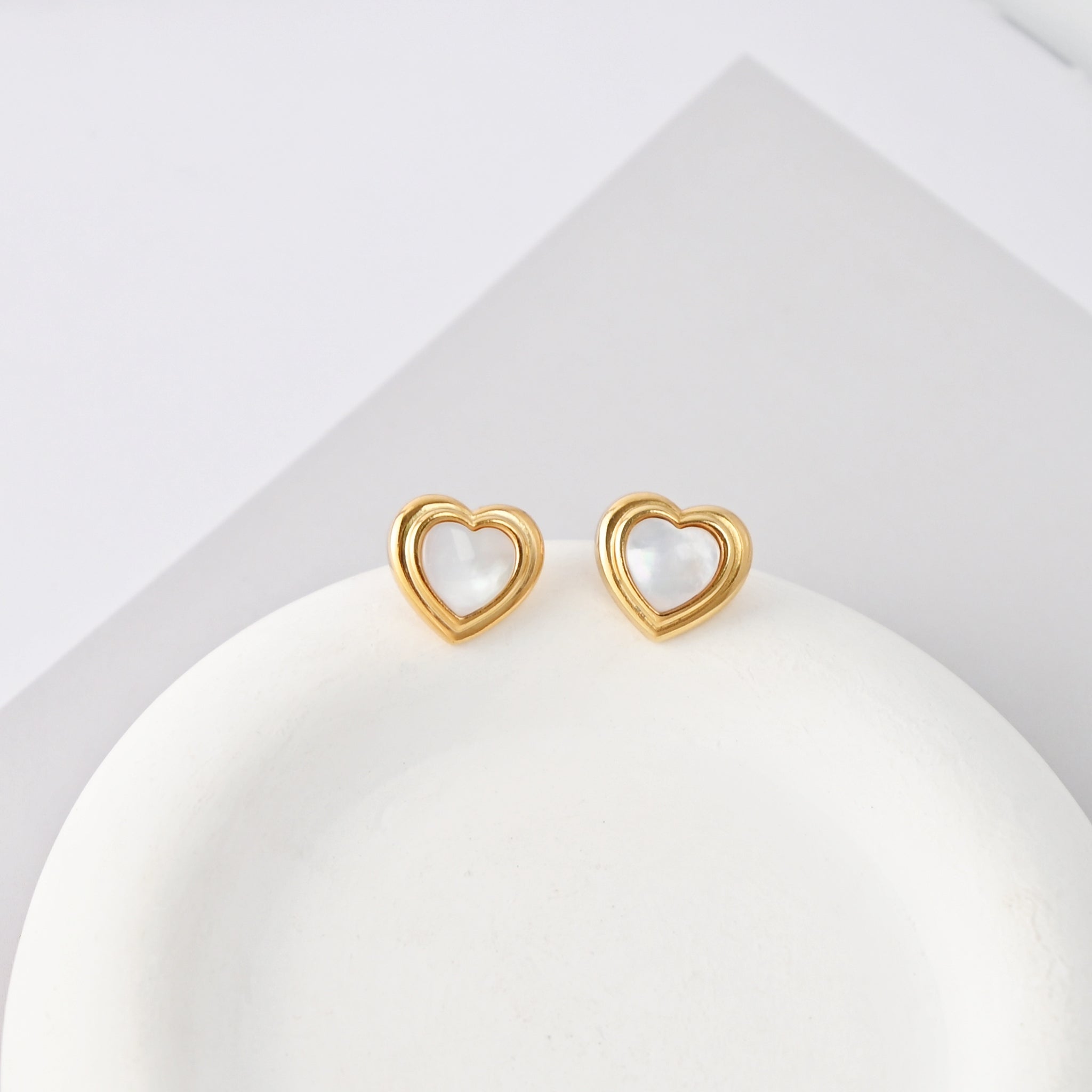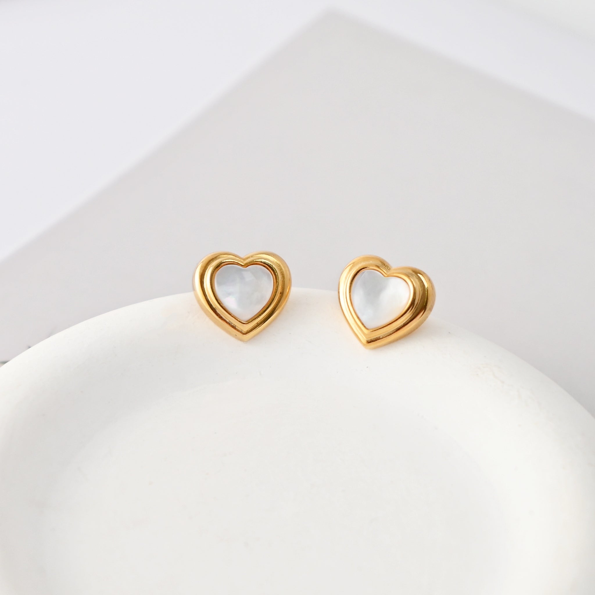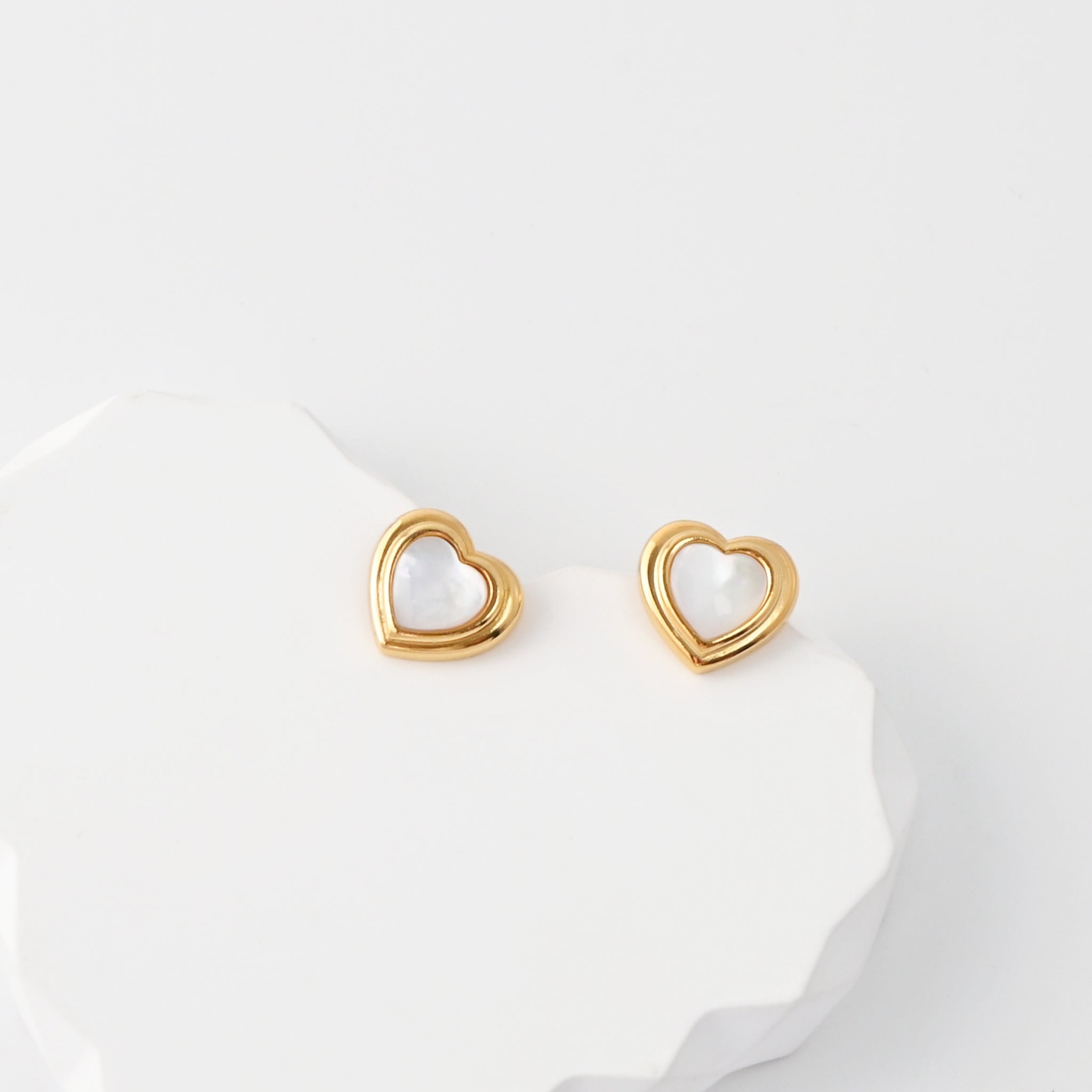 18K Gold Plated Heart Post Earrings, Sterling Silver Made, MOP Heart Post| Finished Earrings