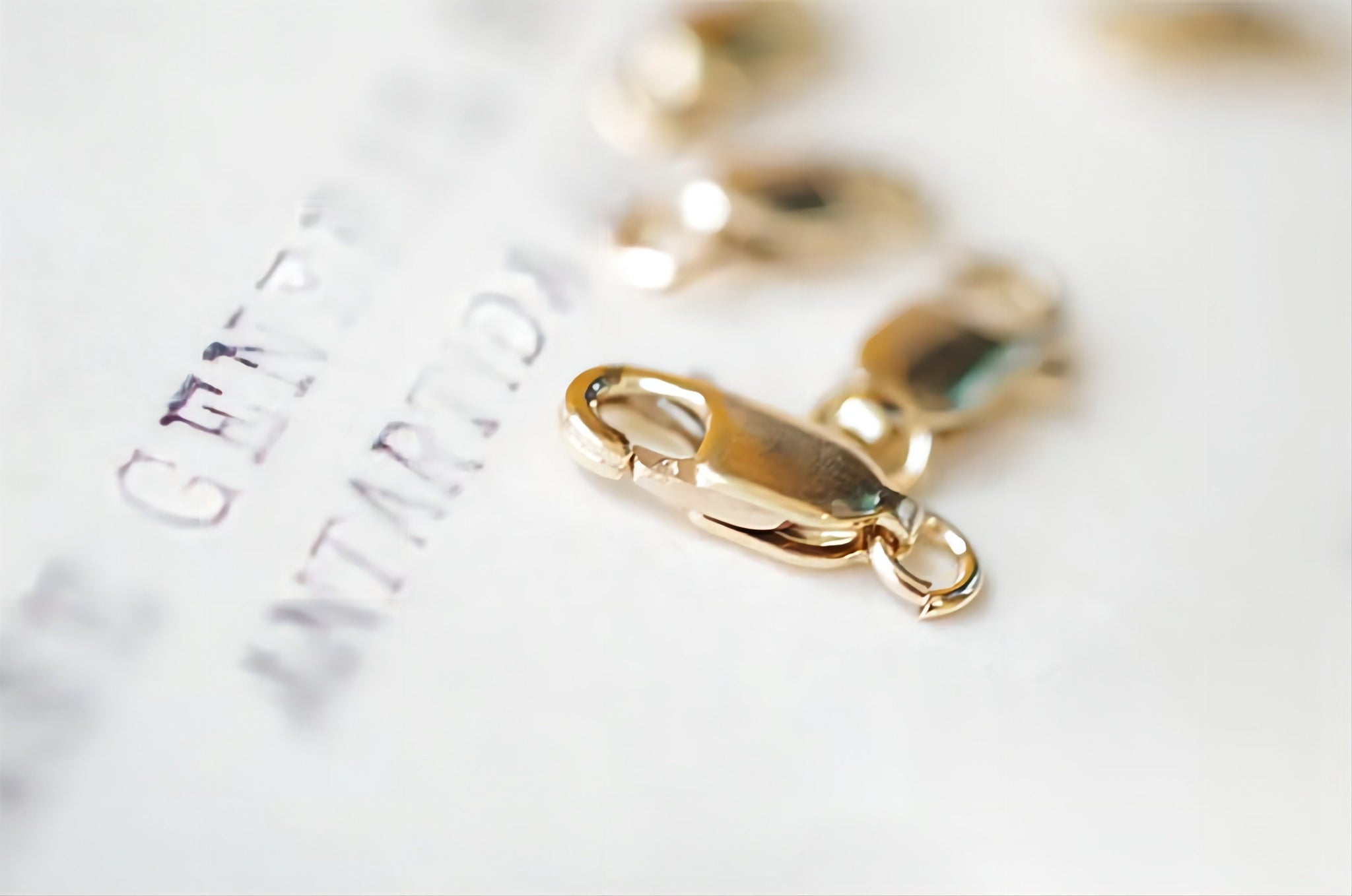 Gold filled jewelry comprises of a layer of solid gold, mechanically bonded to a base metal. Unlike any other electroplated metals, gold filled jewelry constitutes five percent gold metal content and the karat of the gold alloy should be indicated on its finished products. Specifically, our gold filled spring clasp are 14k gold filled with copper as its based metal and a stamp of "1/20 14K" can be found in our gold filled products.
