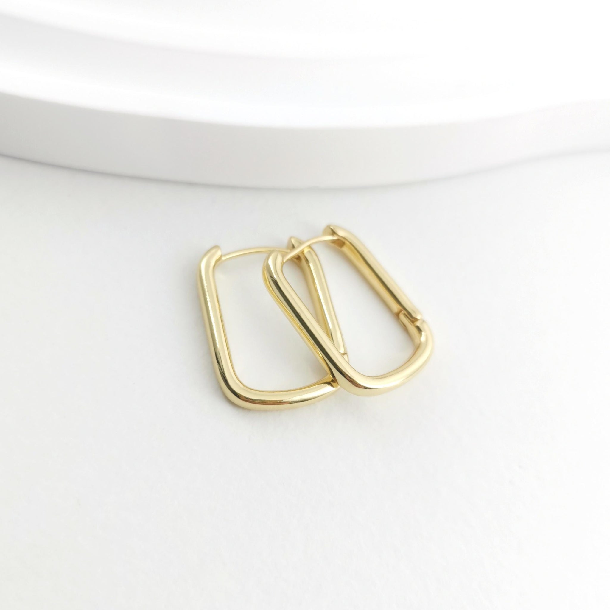 10pcs Gold Rectangle Ear Hoops, 22x16mm, 18K Gold Plated Leverback Earrings, Huggie Hoops Earring S1069Size: 22x16mmThickness...