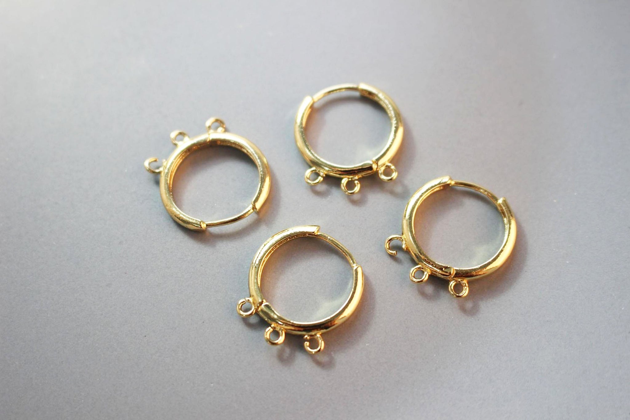 10pcs- Gold round Ear Hoops with 3 loops, 14K Gold/ Silver Plated Leverback Earrings, Huggie Hoops Earring BB041