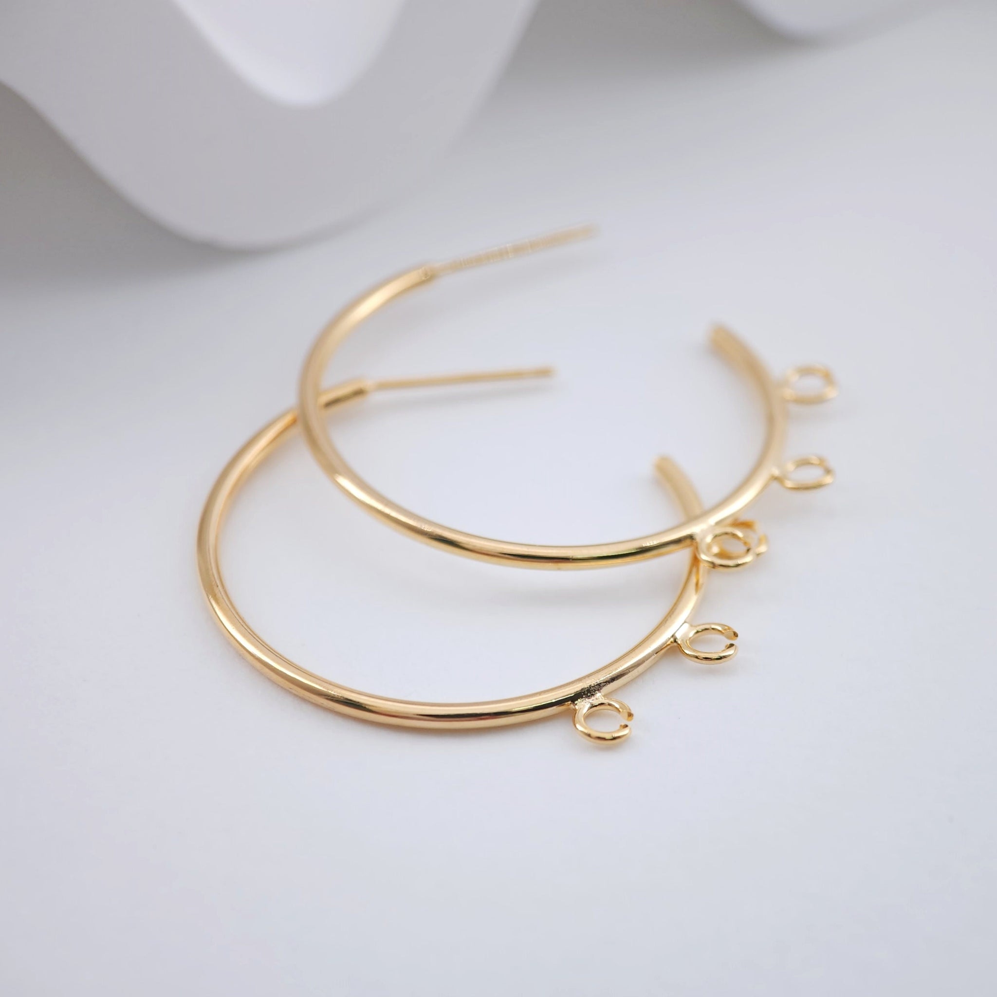 C Shape Earrings Post with 3 loops, 18K Gold, S925 Silver Pin, Nickel Free Hoops, Ear Stud Hypoallergenic Earring Findings ZX244
