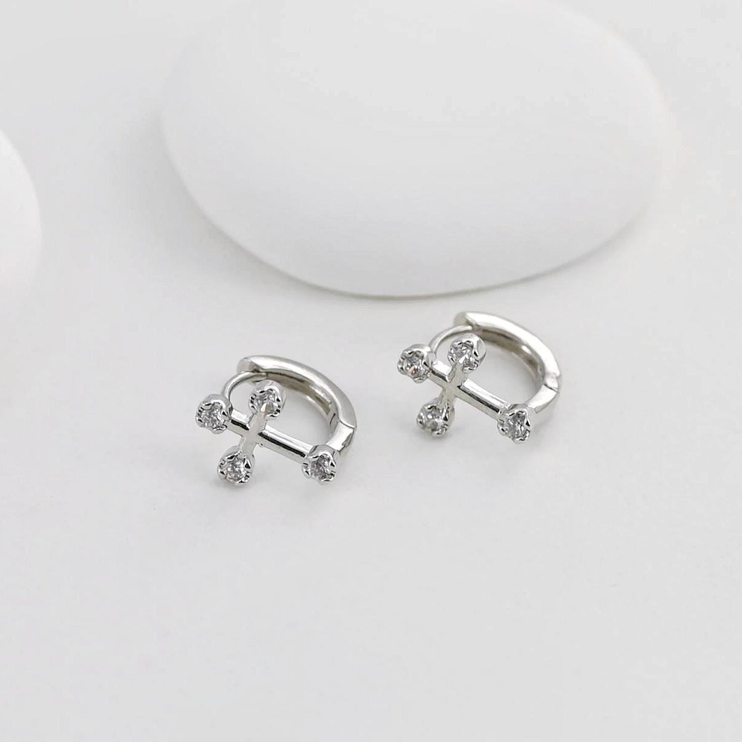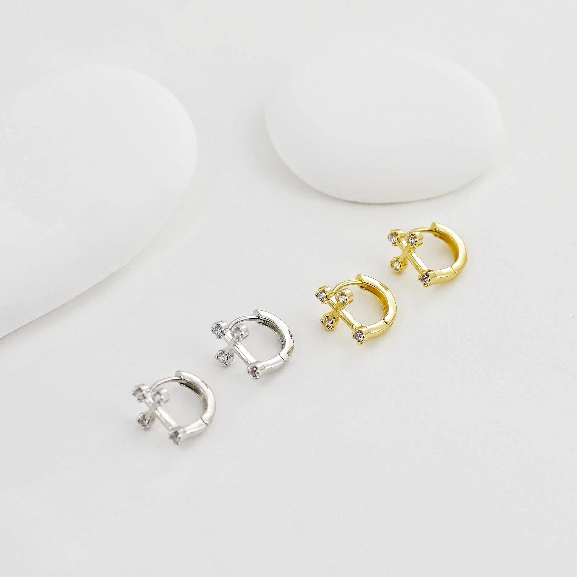 Cross Ear Hoops Pave CZ, Round Hoops, 13mm, 18K Gold Plated Leverback Earrings, Huggie Hoops Earring D0552