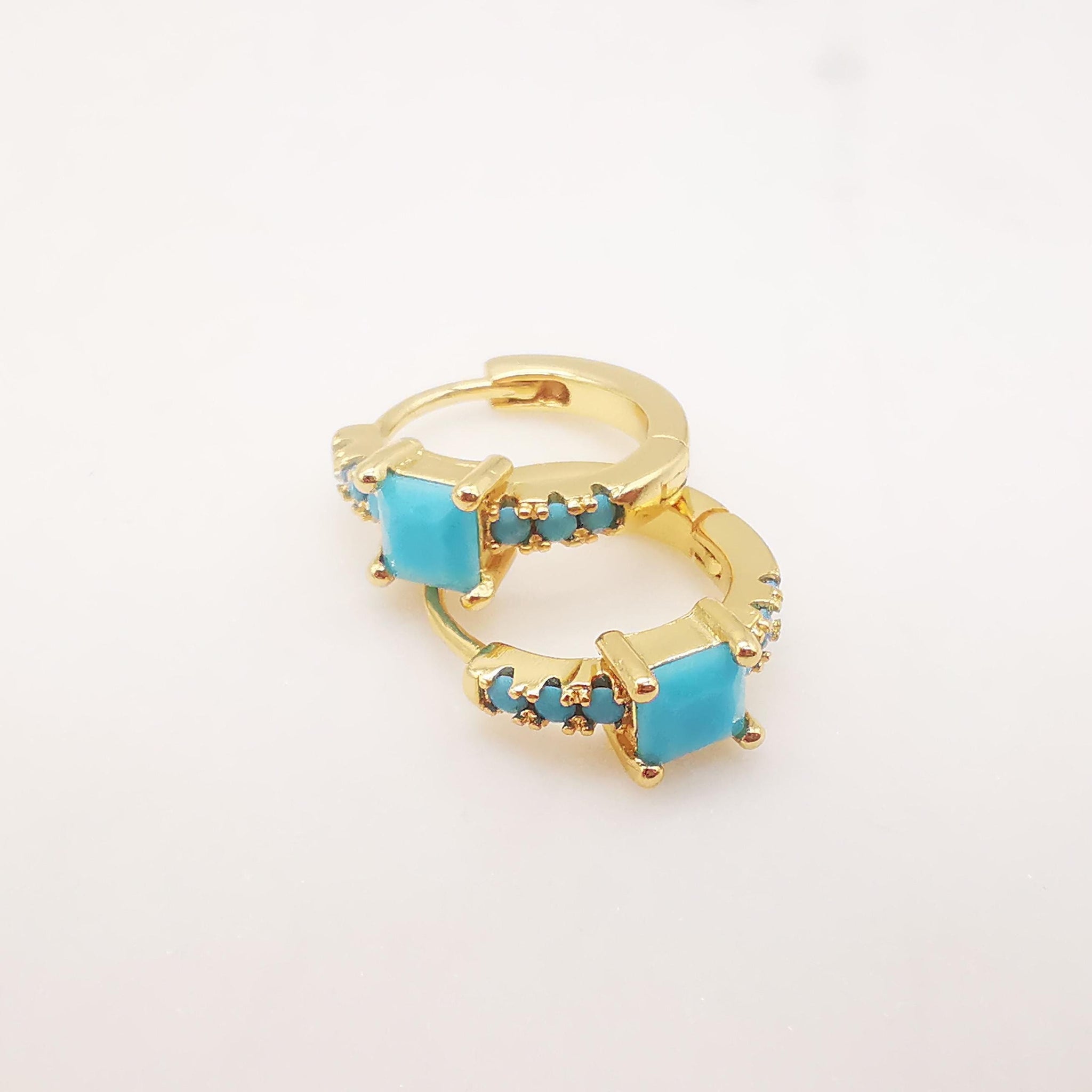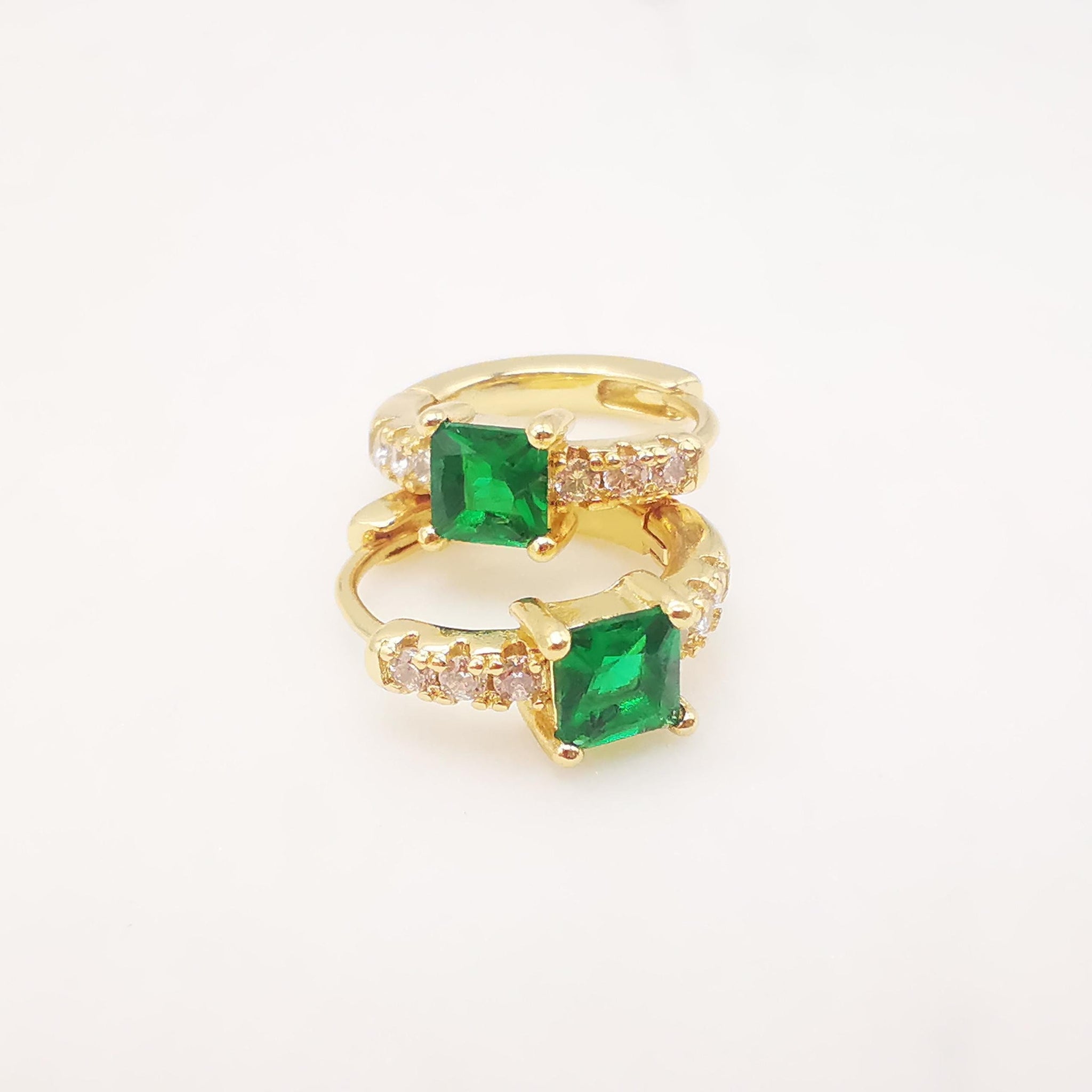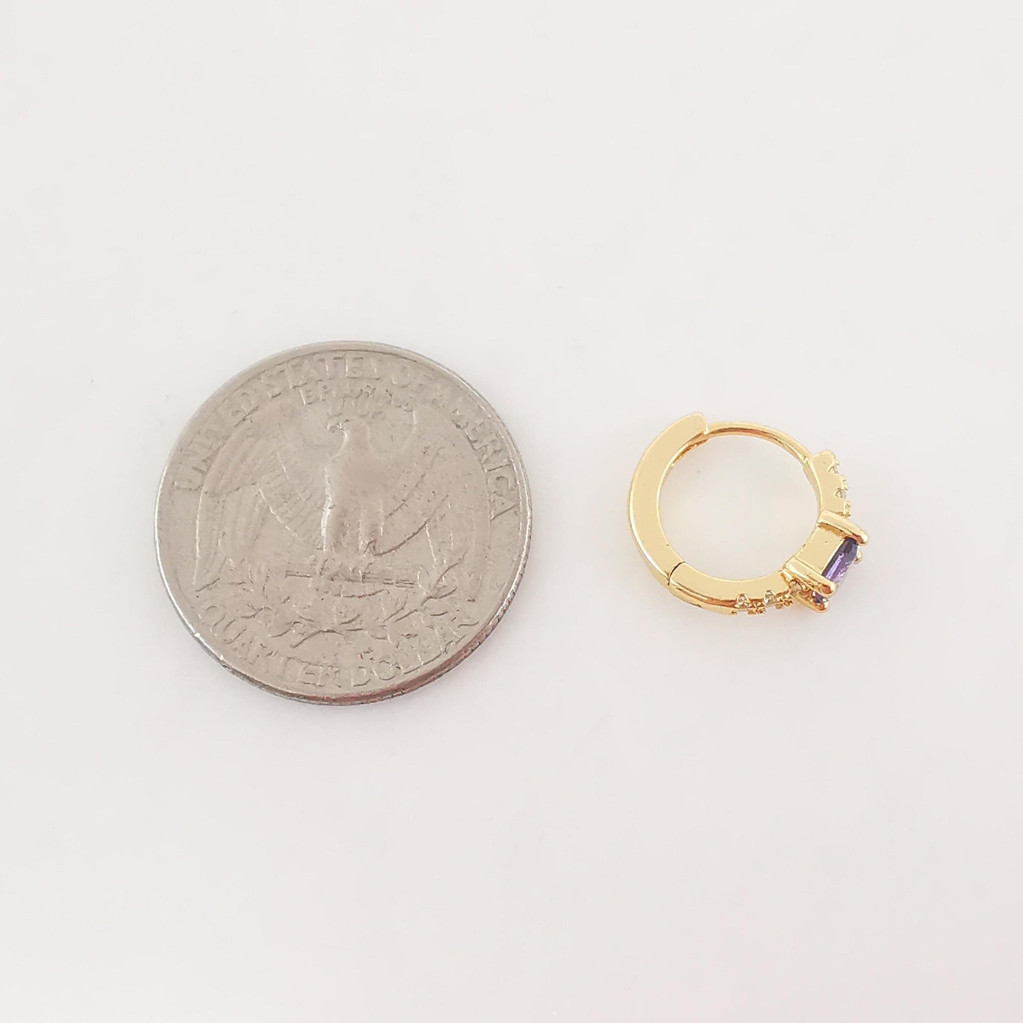 Cubic Ear Hoops Multicolor Pave Crystal , 13mm, 18K Gold Plated Leverback Earrings, Huggie Hoops Earring...