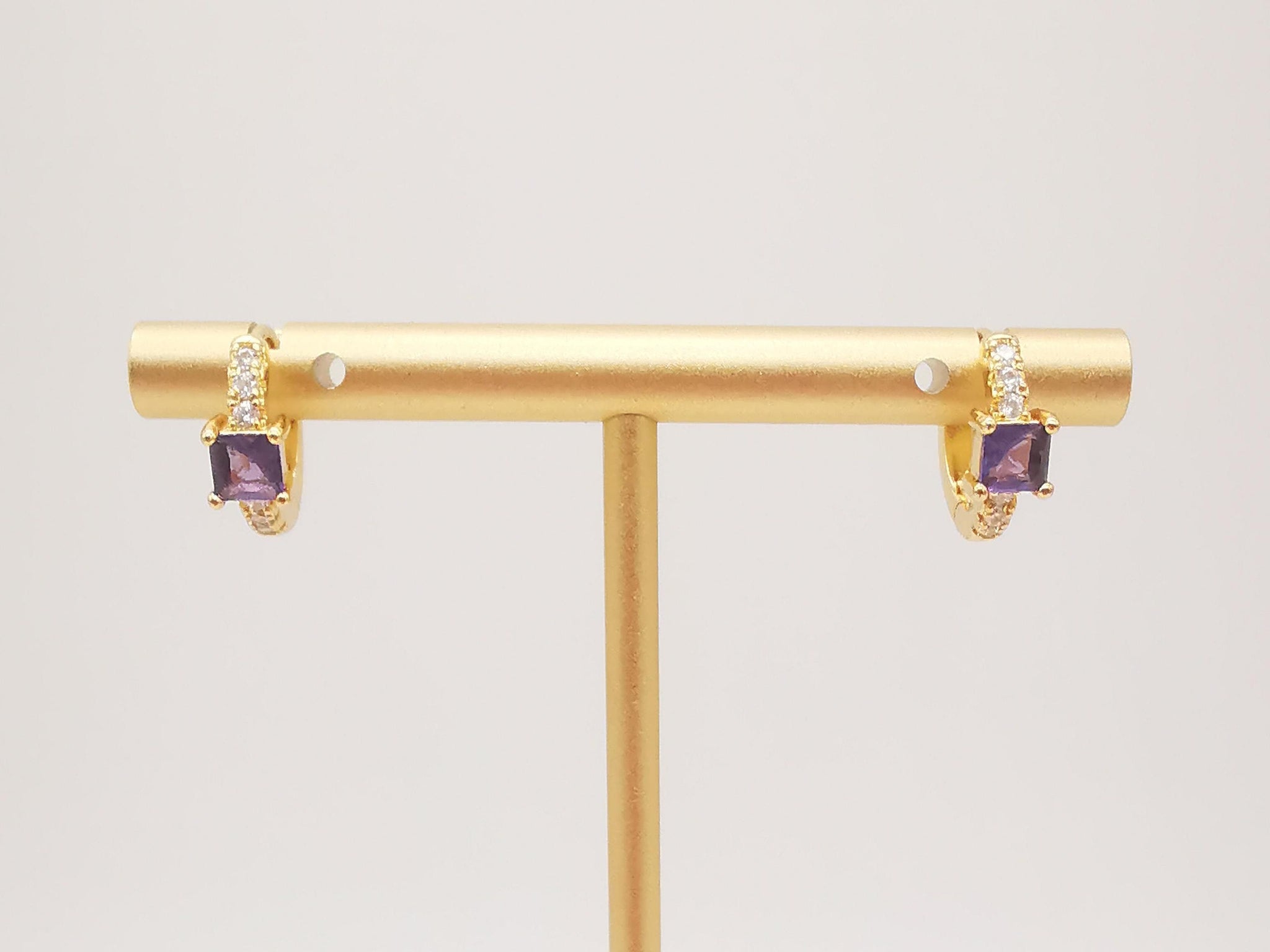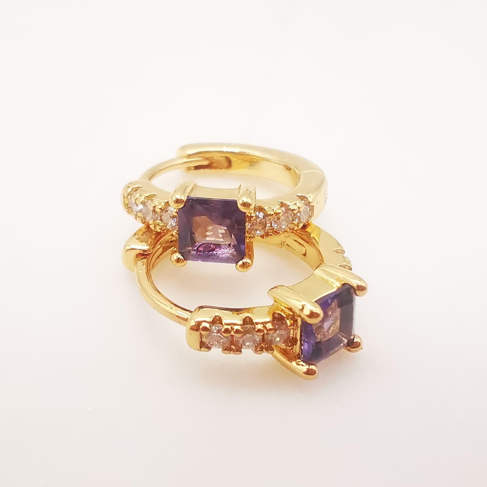 Cubic Ear Hoops Multicolor Pave Crystal , 13mm, 18K Gold Plated Leverback Earrings, Huggie Hoops Earring S20265