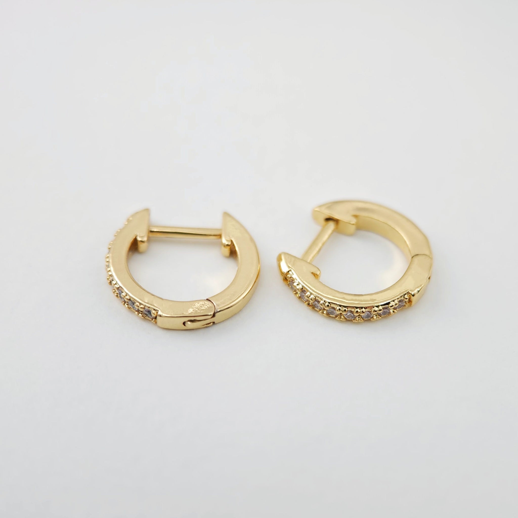 Cubic Ear Hoops Pave Crystal, 12mm, 18K Gold Plated Leverback Earrings, Huggie Hoops Earring S1105