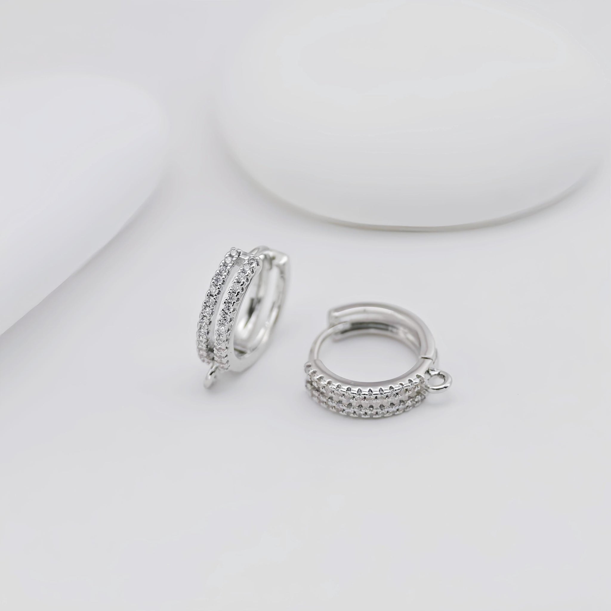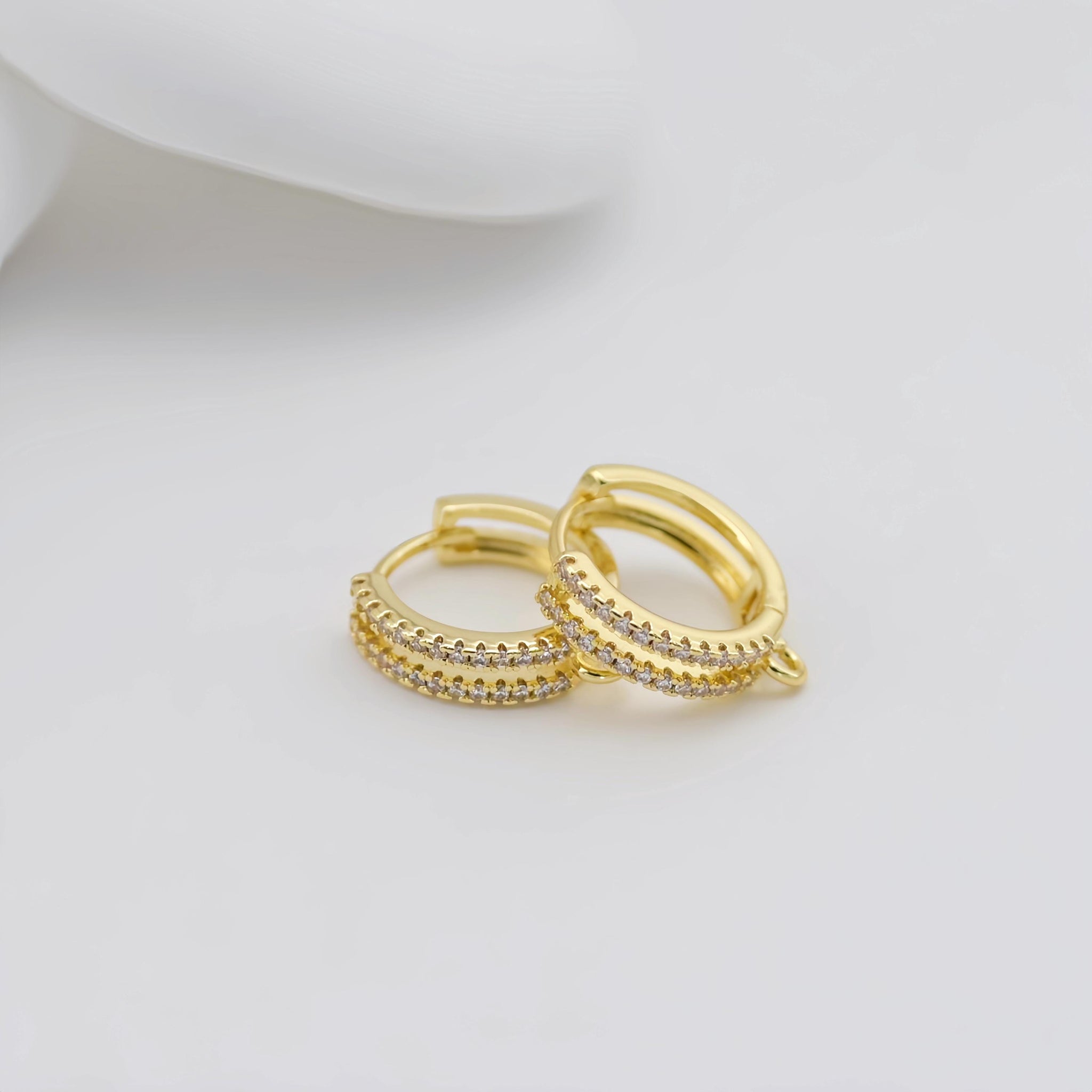 Cubic Zirconia Ear Hoops Multicolor Pave Crystal , 11.8mm, 18K Gold Plated Leverback Earrings, Huggie Hoops Earring D0557