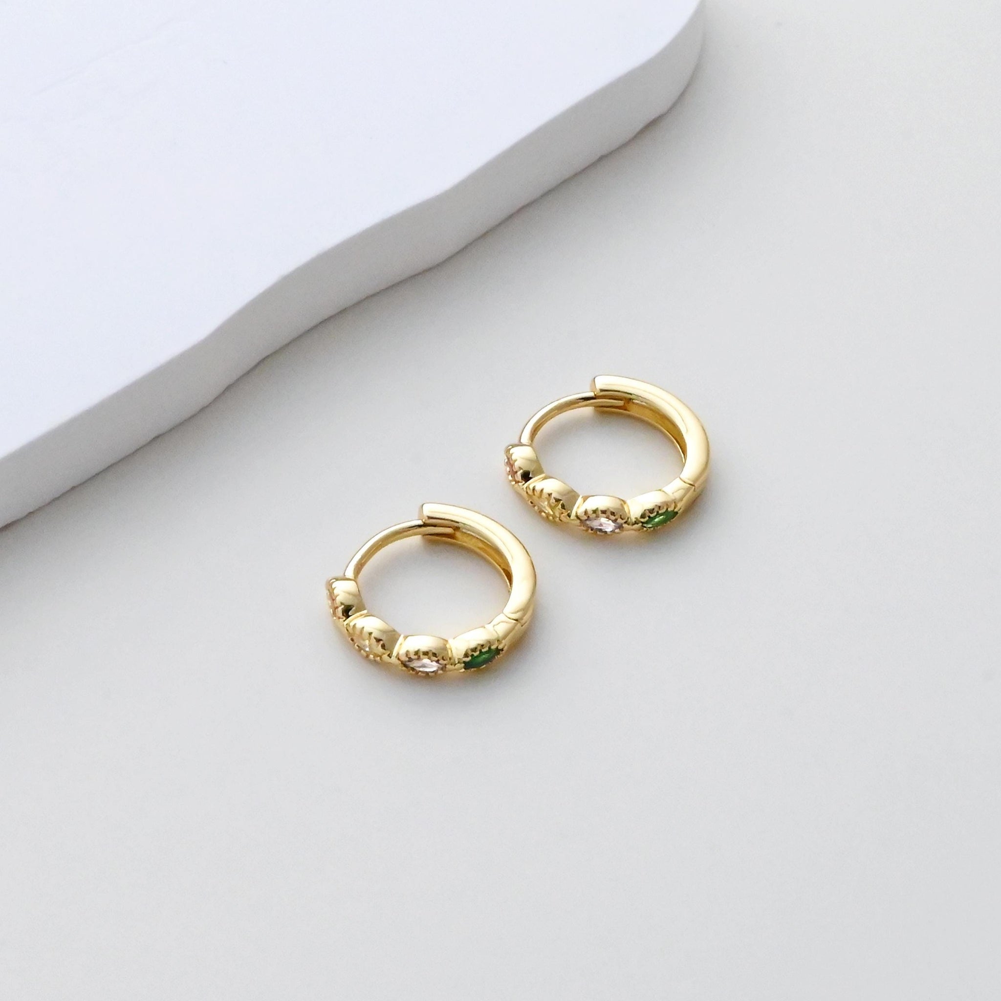 CZ Multicolor Earring Hoop, Gold Plated Huggie Hoop Earring, Leverback Earring, DIY Earring  Findings, Handmade Earring Supplies D0524-D0527