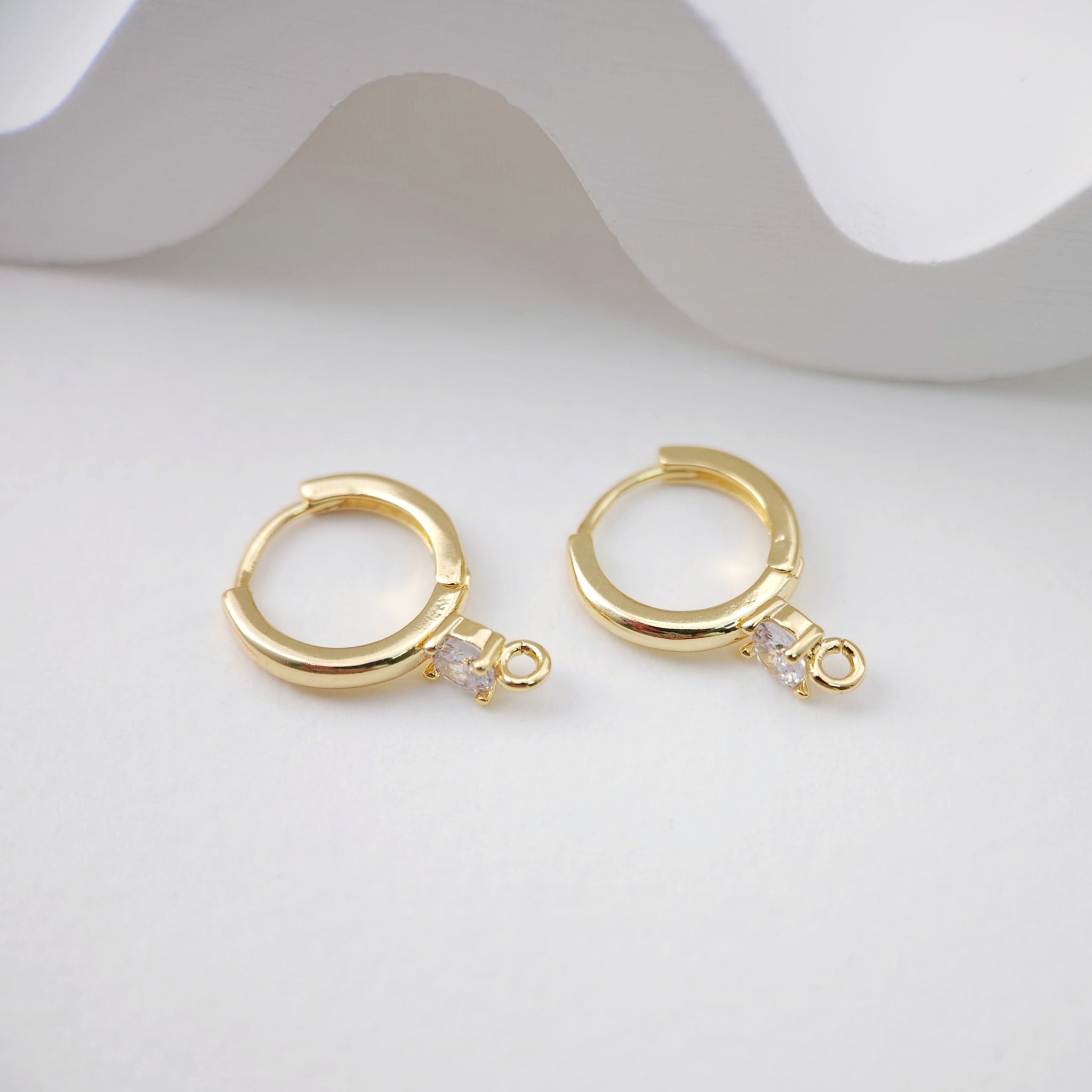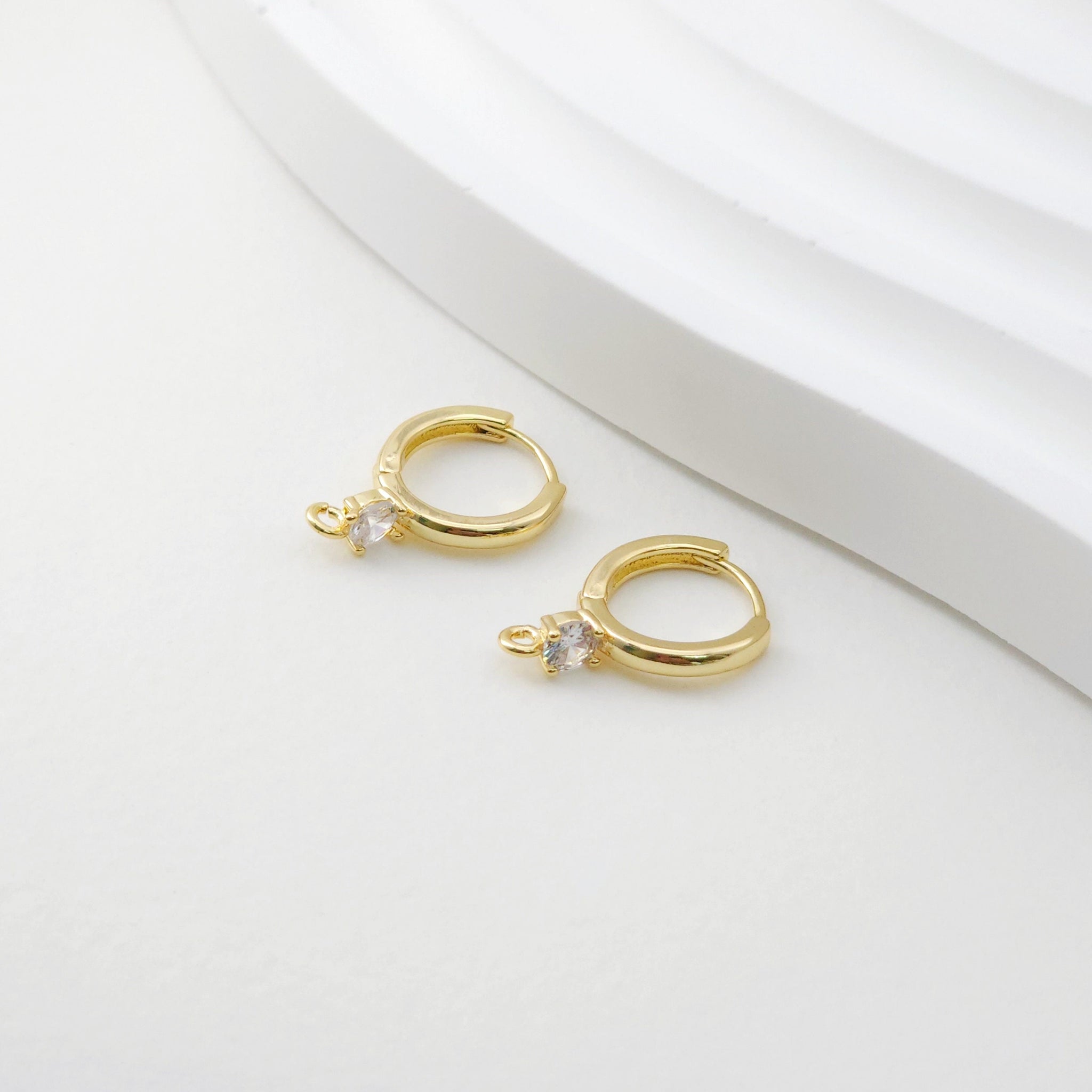 CZ Pave Earring Hoop, Gold Plated Huggie Hoop Earring with Loop, Huggie Hoops DIY Earring Findings,Handmade...