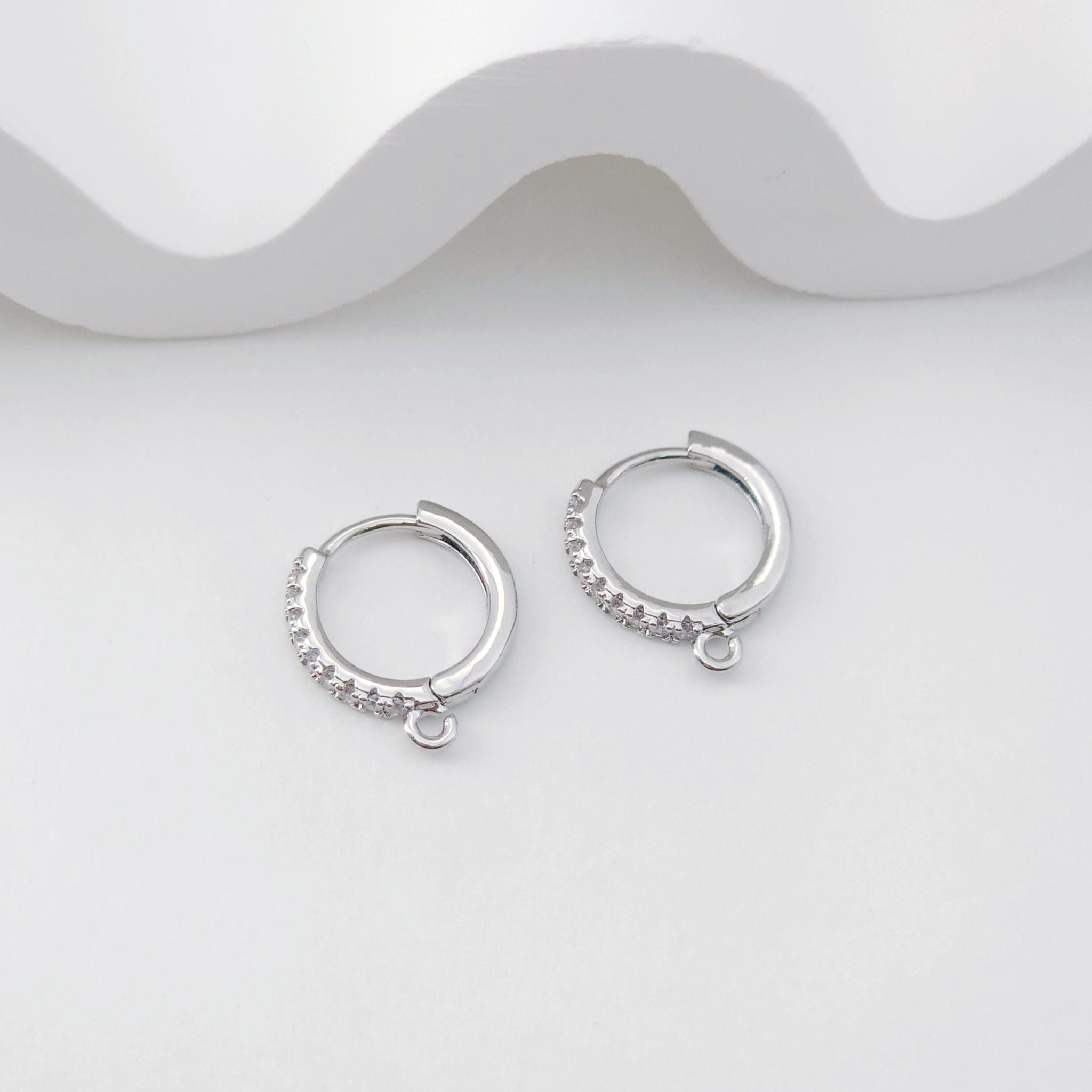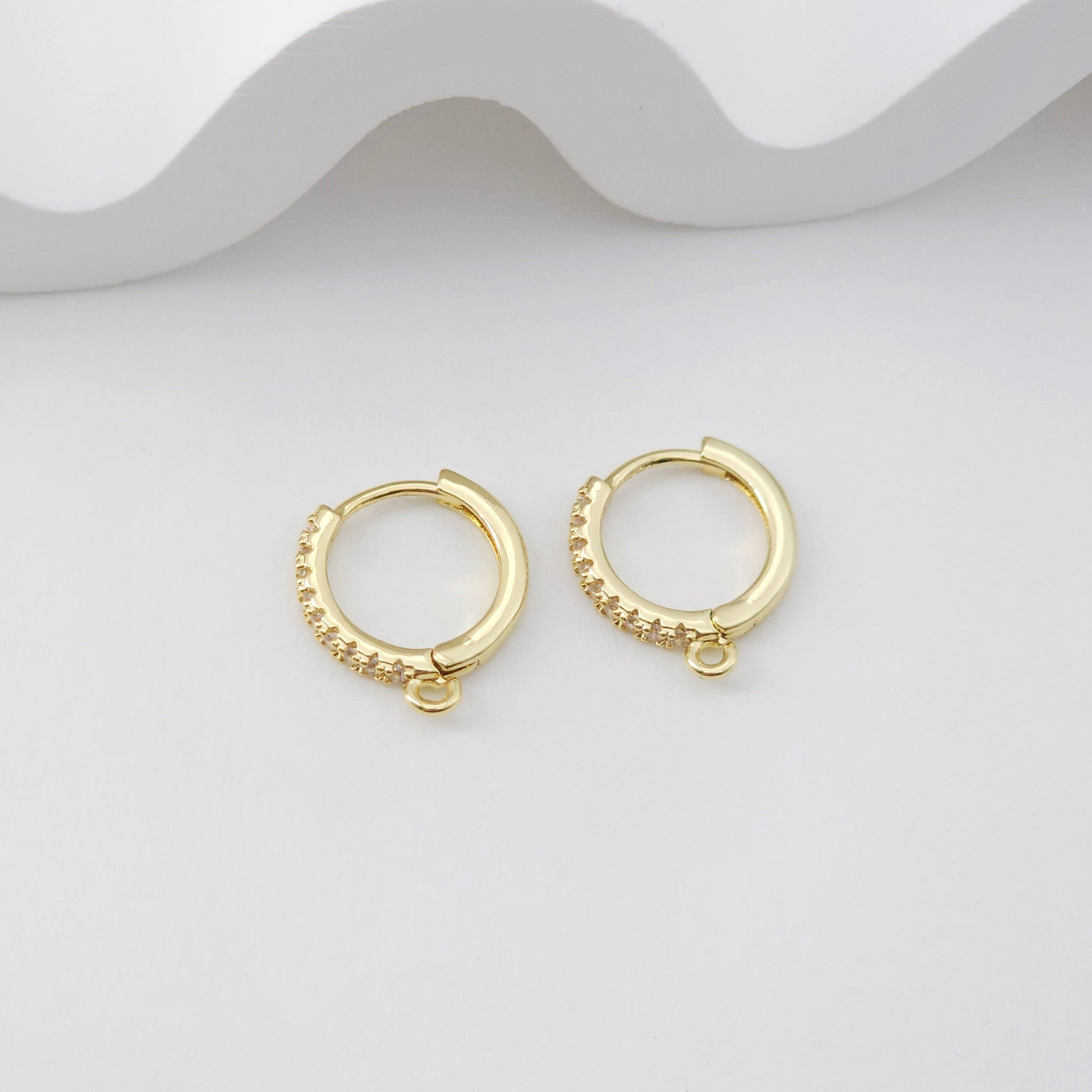 CZ Pave Earring Hoop, Gold Plated Huggie Hoop Earring with Loop, Huggie Hoops DIY Earring Findings,Handmade...