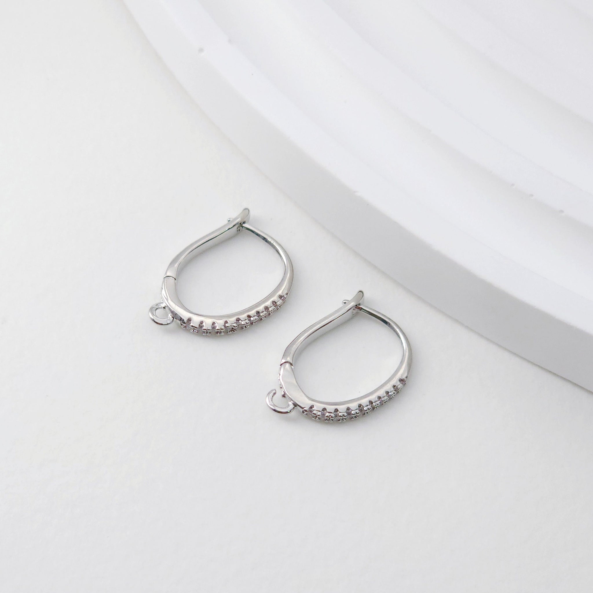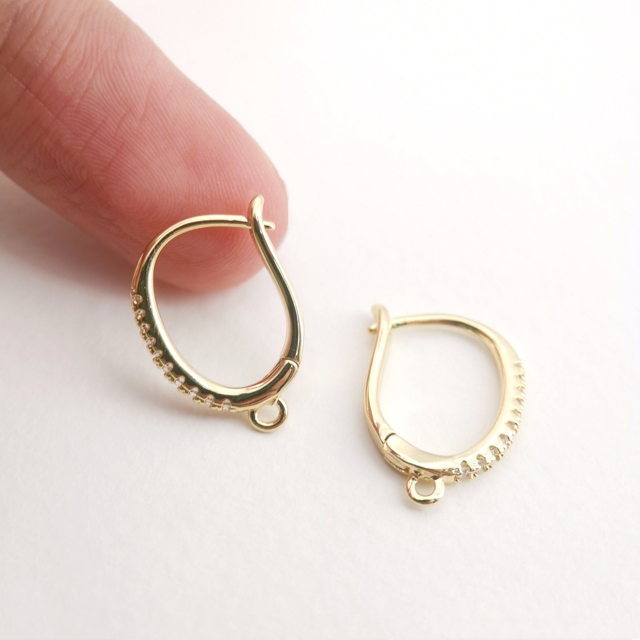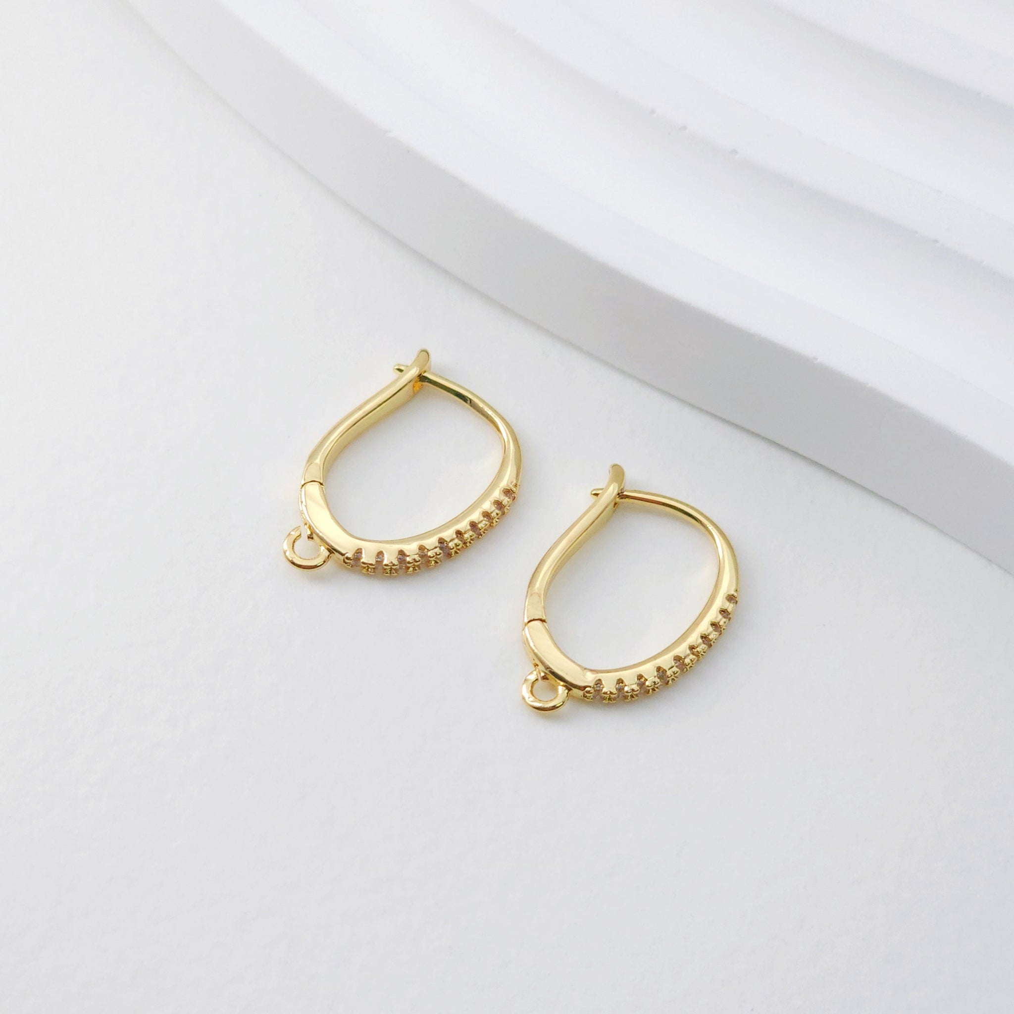 Ellipsoid CZ Pave Earring Hoop, Gold Plated Huggie Hoop Earring with Loop, Huggie Hoop DIY Earring  Findings,Handmade Earring Supplies D0097