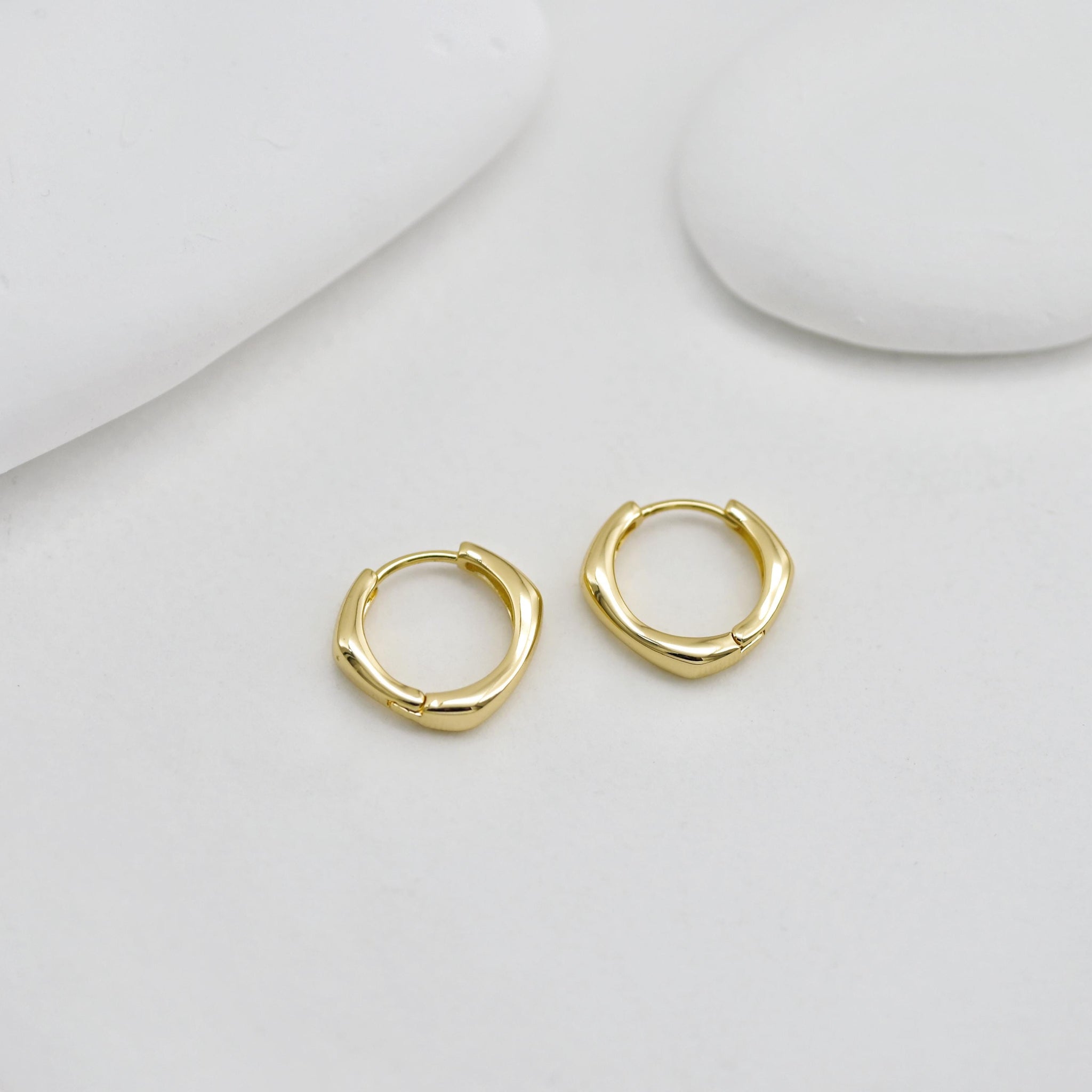 Geometric Rhombus Hoop, Minimalist Everyday Earrings, 17mm, 18K Gold Plated Leverback Earrings, Huggie Hoops Earring D0554