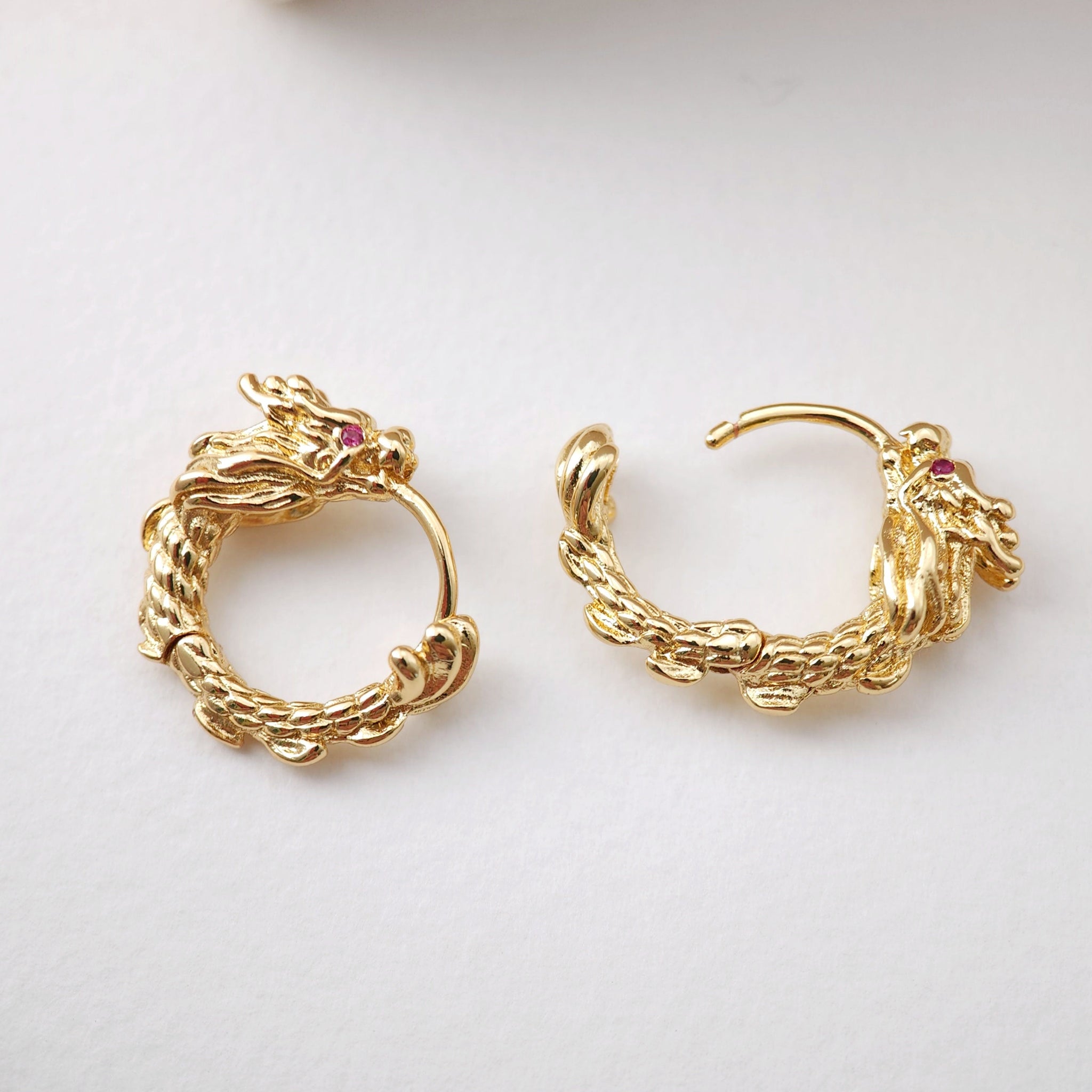 Gold Dragon Hoop Earring, 18.6mm, 18K Gold Plated Leverback Earrings, Huggie Hoops Earring S1188