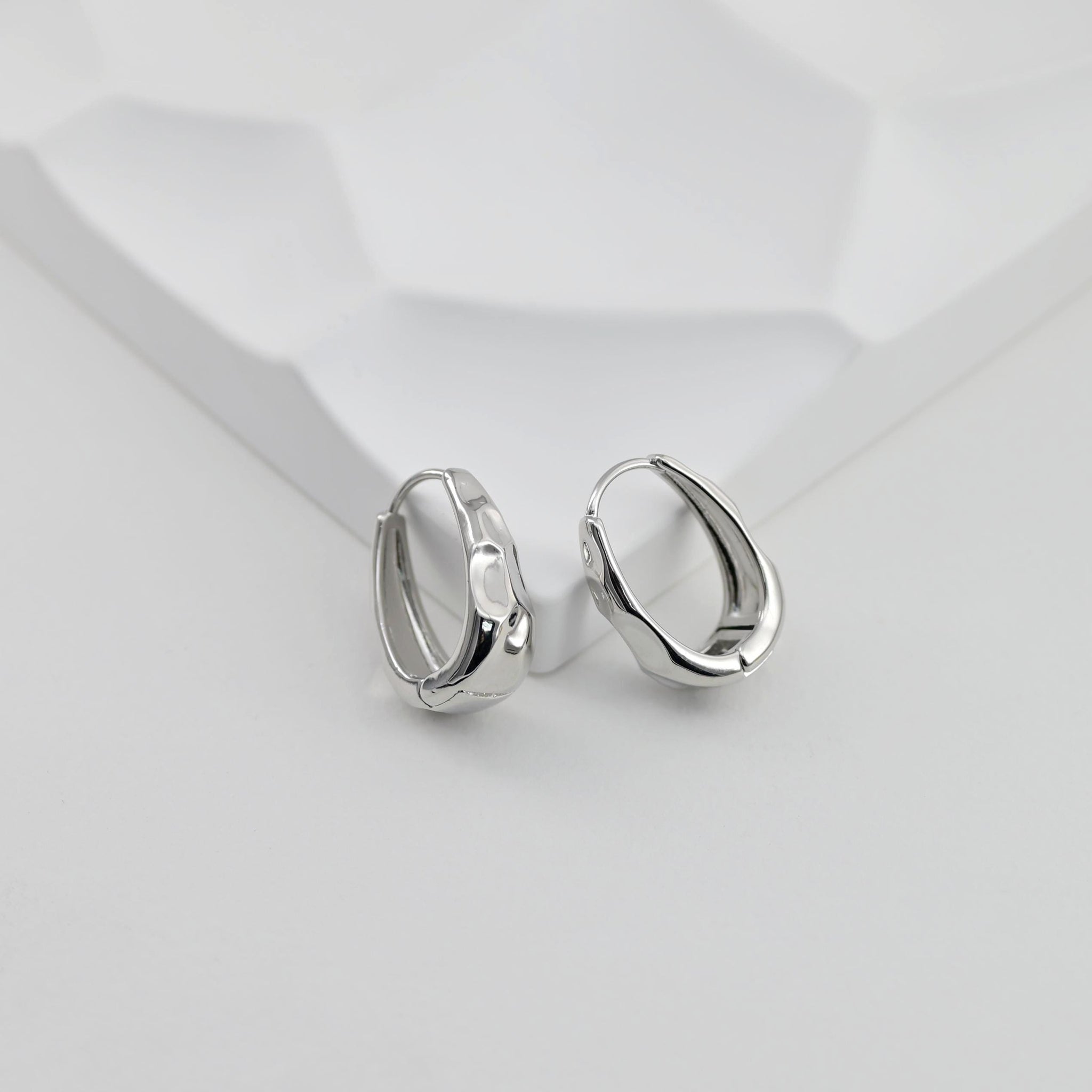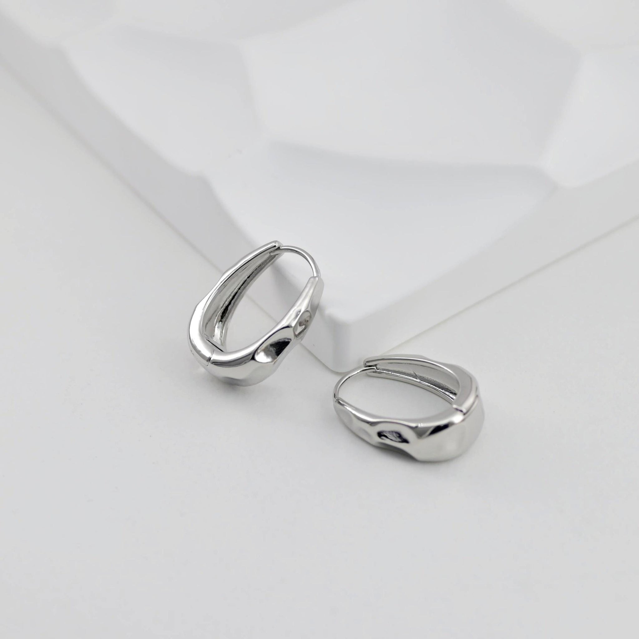 Gold Oval Ear Hoops, 18K Gold/Silver Plated Leverback Earrings, Huggie Hoops Earring D0565