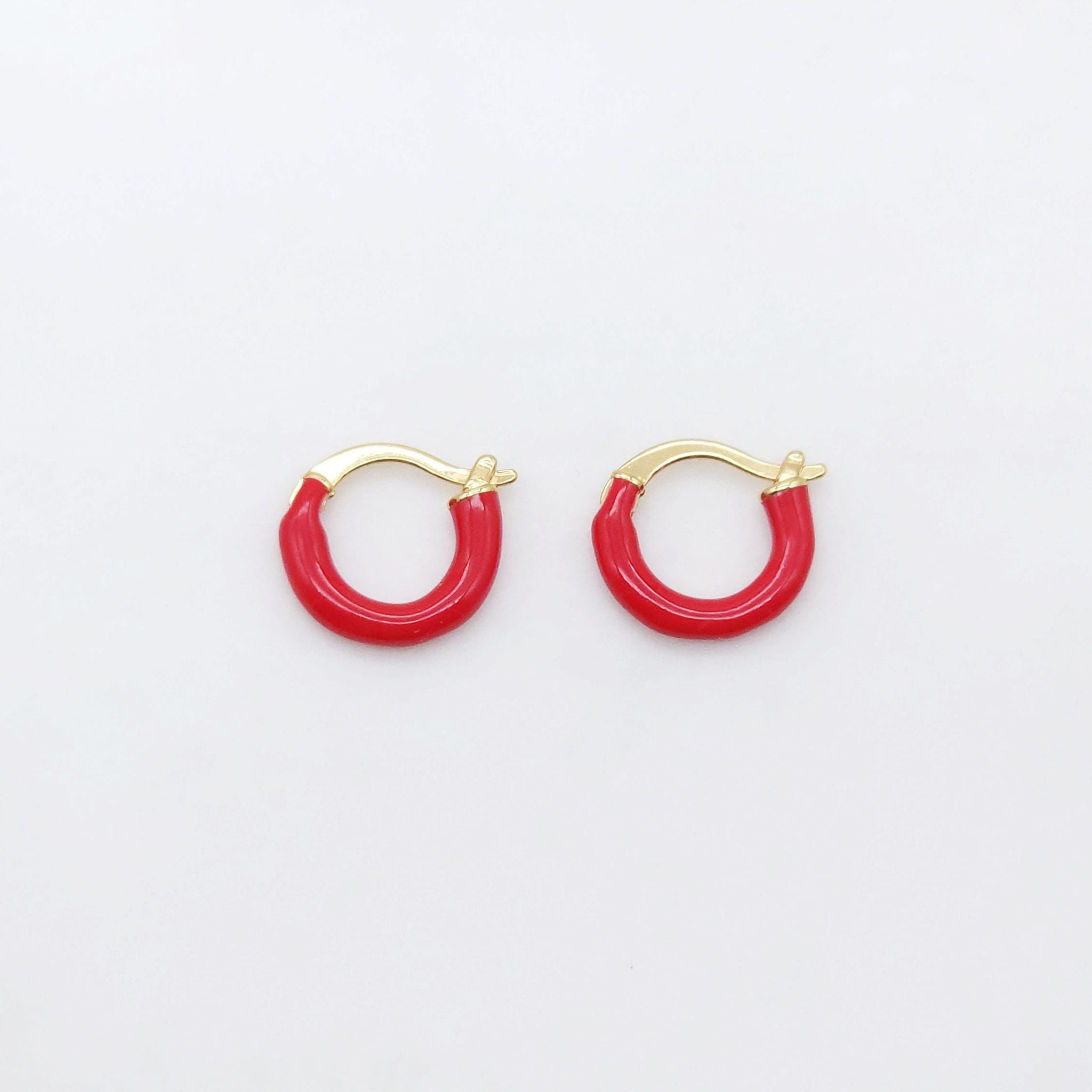 Multicolor Enamel Ear Hoops, 15mm, 9 colours you choose, 18K Gold Plated Leverback Earrings, Huggie Hoops...