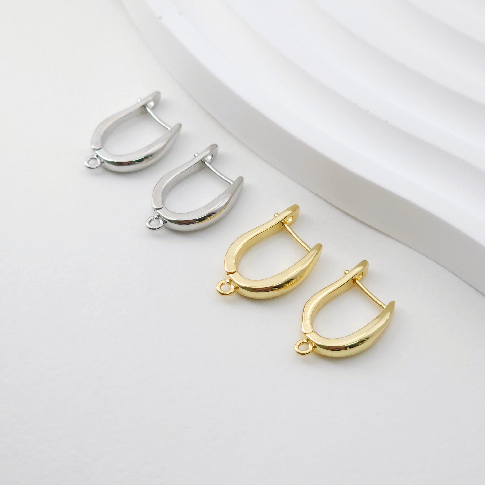 Polished English lock with loop, Gold/Rhodium Plated Earring hoop, Hypoallergenic & Nickel-Free,DIY Handmade Earring Findings Supplies D0087