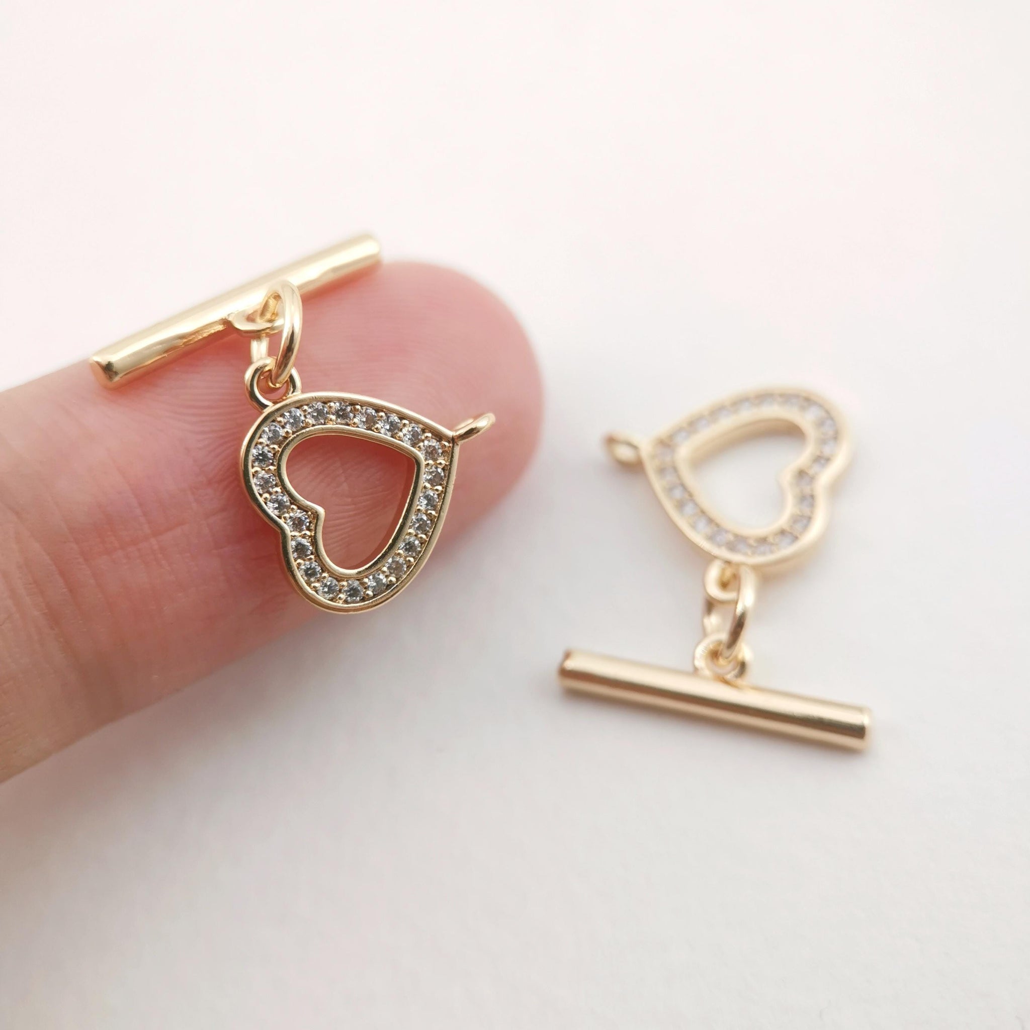 Four Leaf Clover/Circle/Heart OT Toggle Clasps, 18K Gold Plated OT Buckle, CZ Pave, Necklace Closure, Connectors...