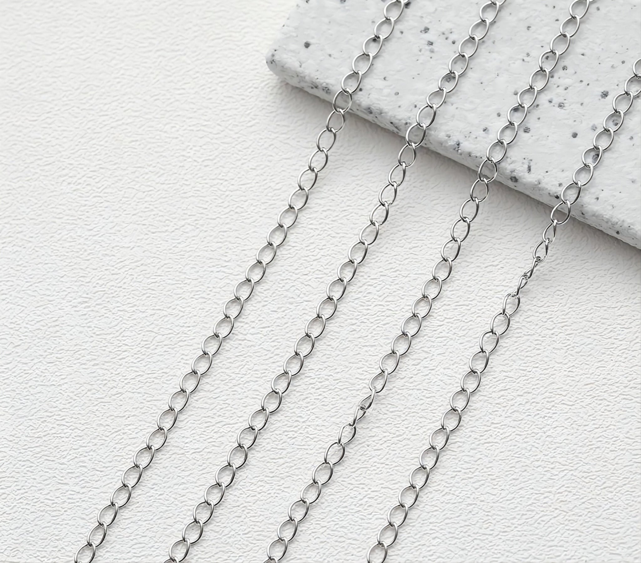 HomeJewelry Making FindingsSilver Plated Cable Chain, 2.5mm, 3mm in Flat, Necklace Link Chain, Unfinished Chain, Hypoallergenic, Necklace Making Findings GT006
