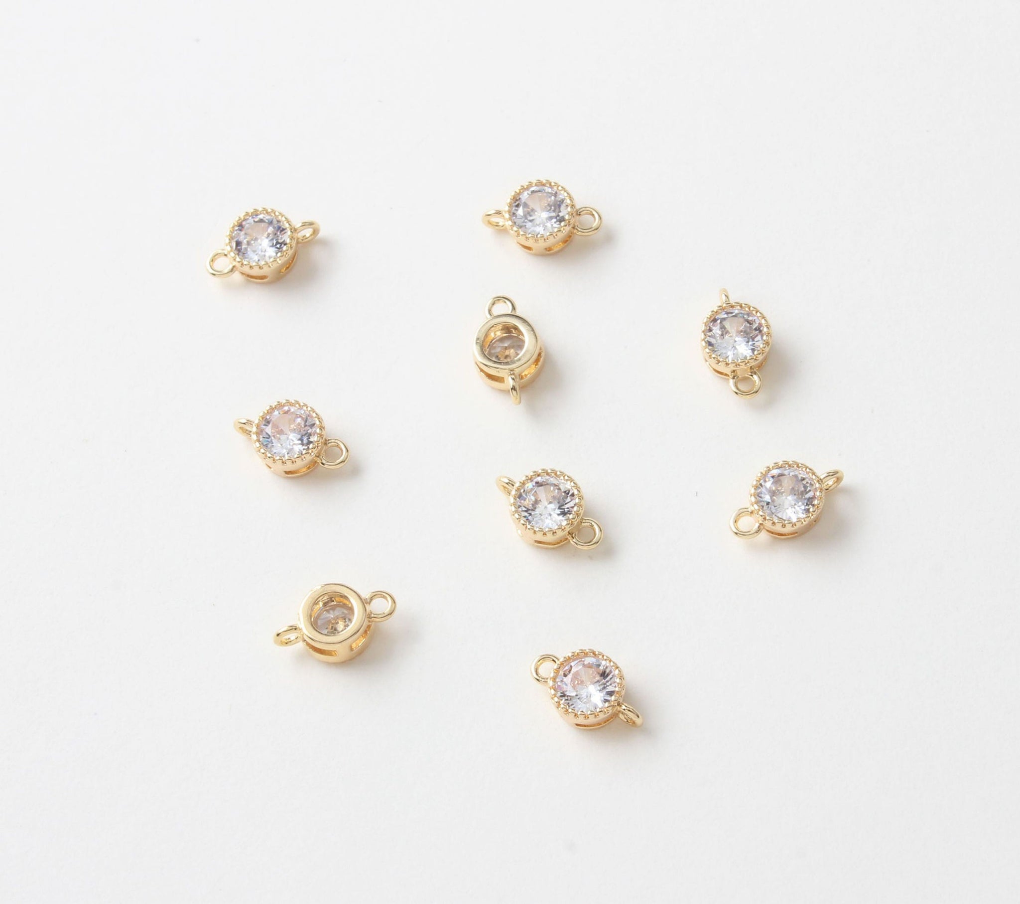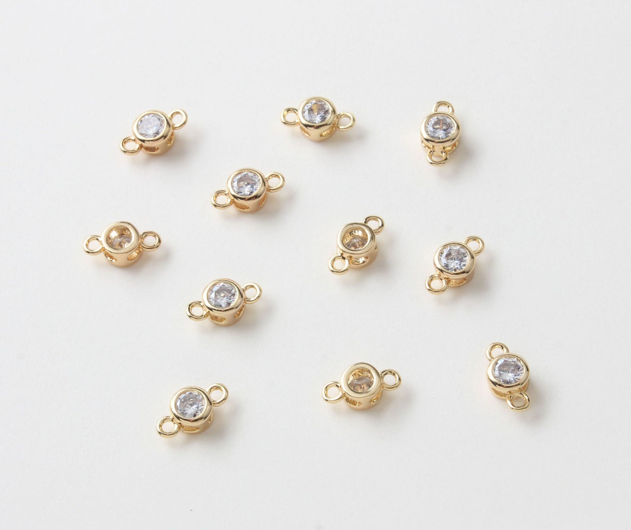 Tiny Round Connectors with CZ Pave, 14K Gold Plated Earring Making Findings, Jewelry Findings GZ164Quantity: 1pc/10PCSSize#1-3x7mm#2-4.5x9mm#3...