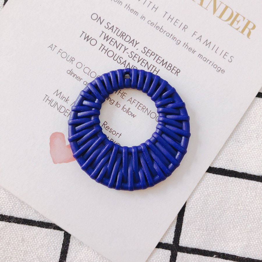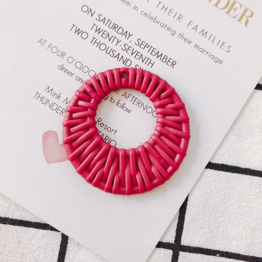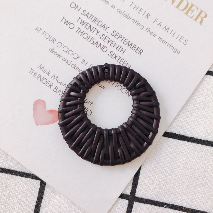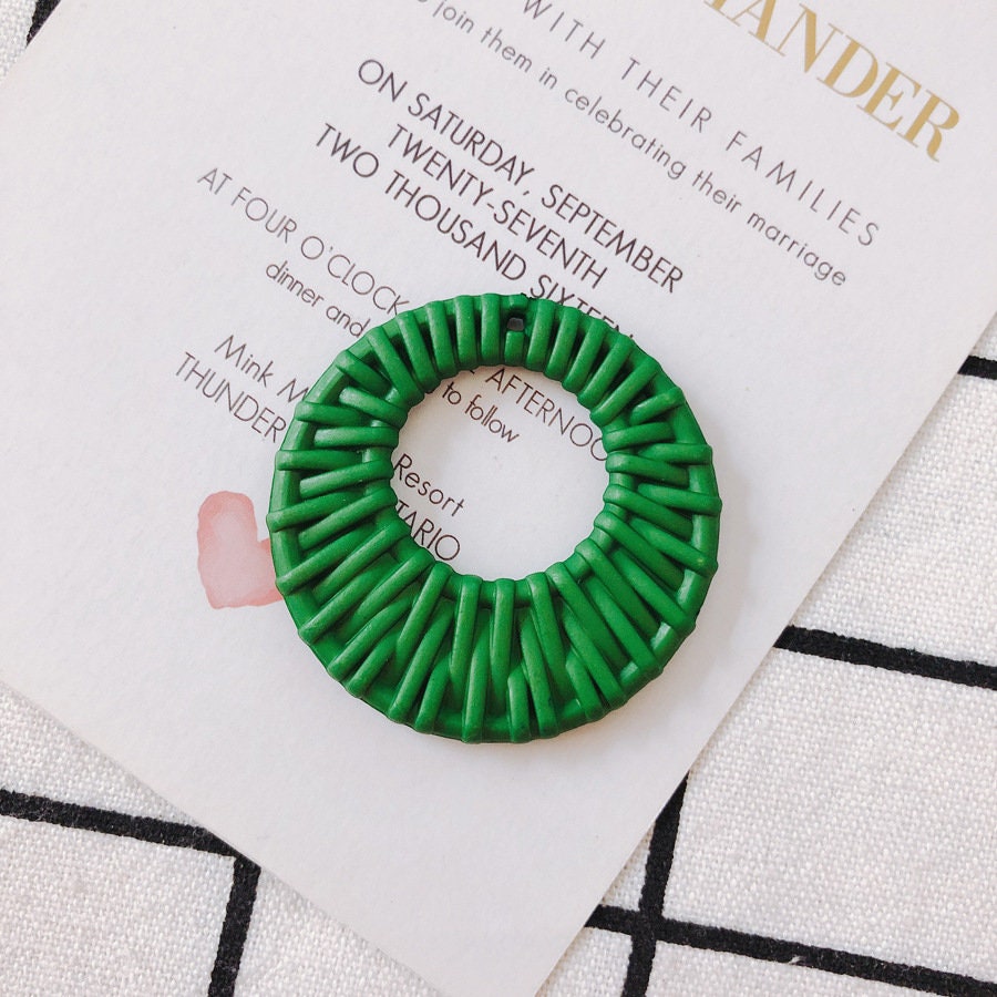 10PCS Resin Faux Woven Rattan Round Hollow Pendant, 8 Colors You Choose, S925 Silver Ear Stick, Nickel Free, Earring Finding MY009