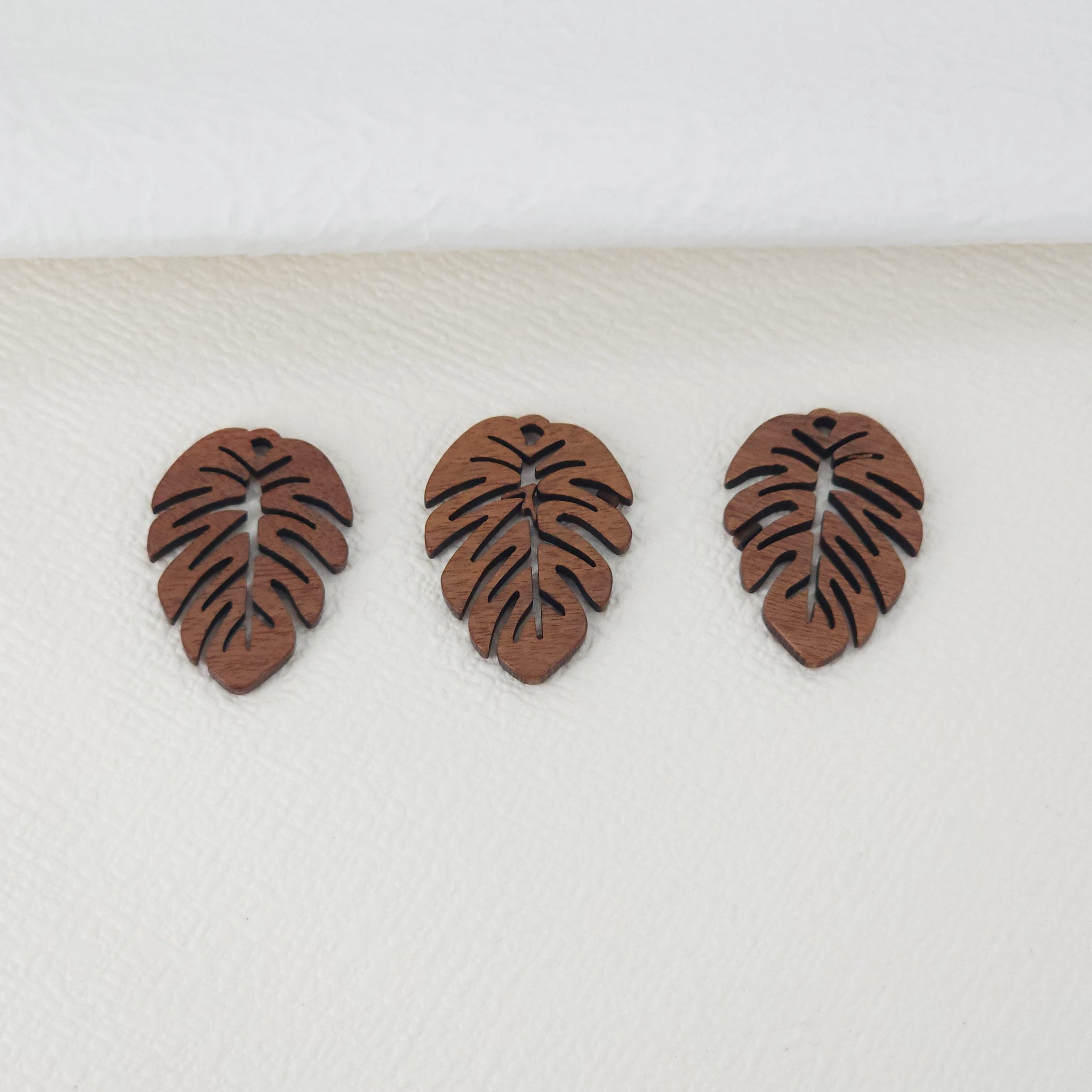 2PCS Monstera Leaf Shape Wood Charms, Wooden Pendant, Reclaimed Walnut Wood, Geometric Statement Wood Earrings Diy Ideas JT947